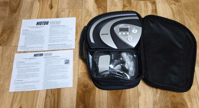This is a Motor Trend digital tire inflator for quickly inflating tires with an automatic shut off to prevent over inflation. This is a few times used item but it is in excellent condition. The compact design makes it easy to store in your vehicle for emergencies. * Digital display for easy reading * Automatic shut-off function * Compact and portable design * Comes with the case. For Sale By: Owner