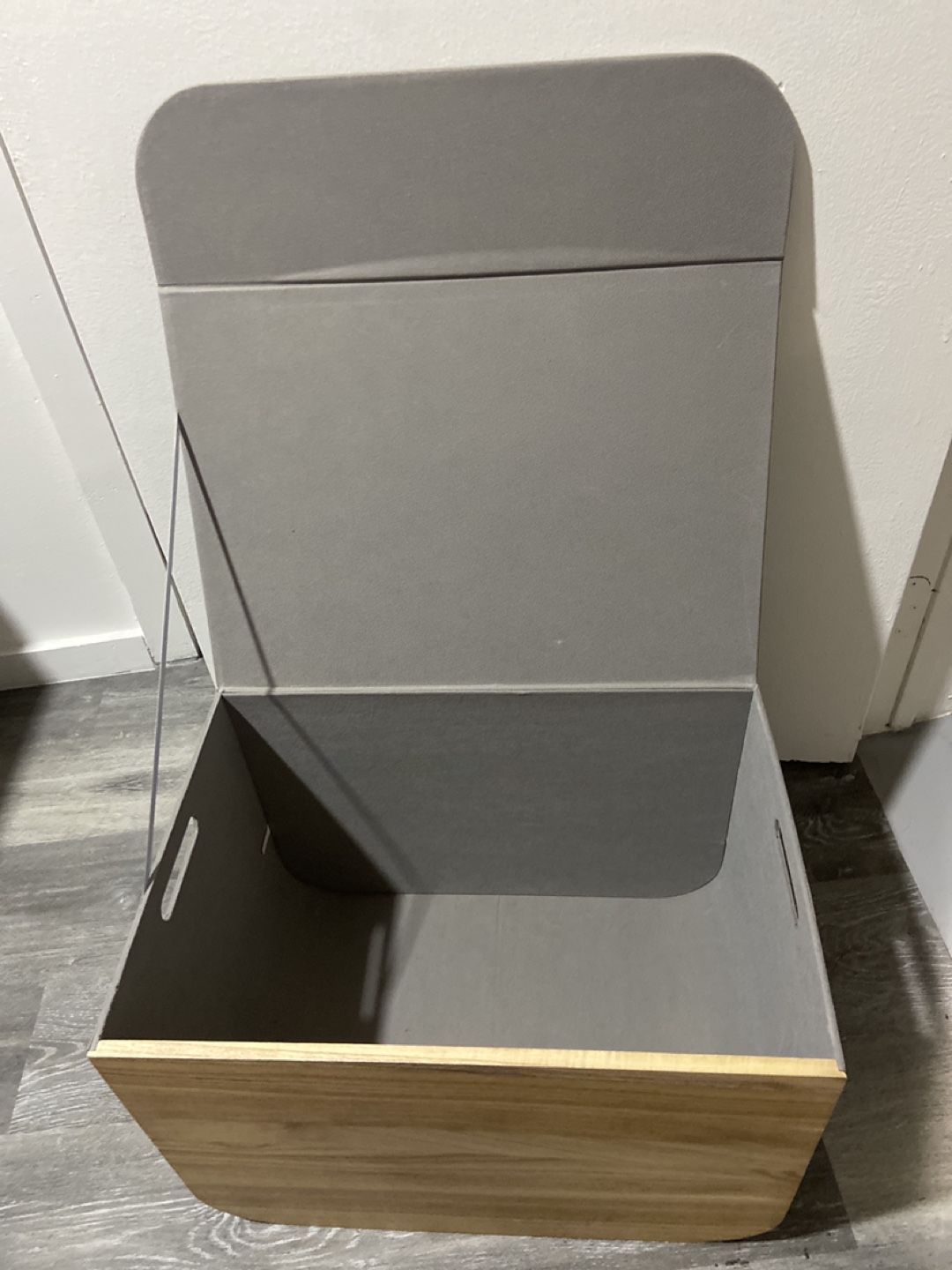 Lightweight and cute toy box with handles! Can also be used to store linens and other household items.