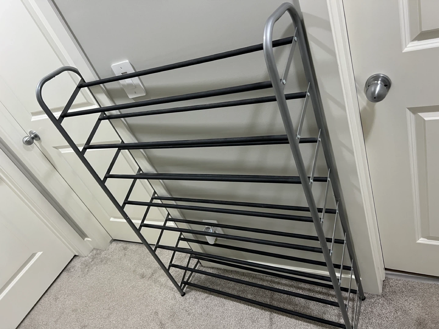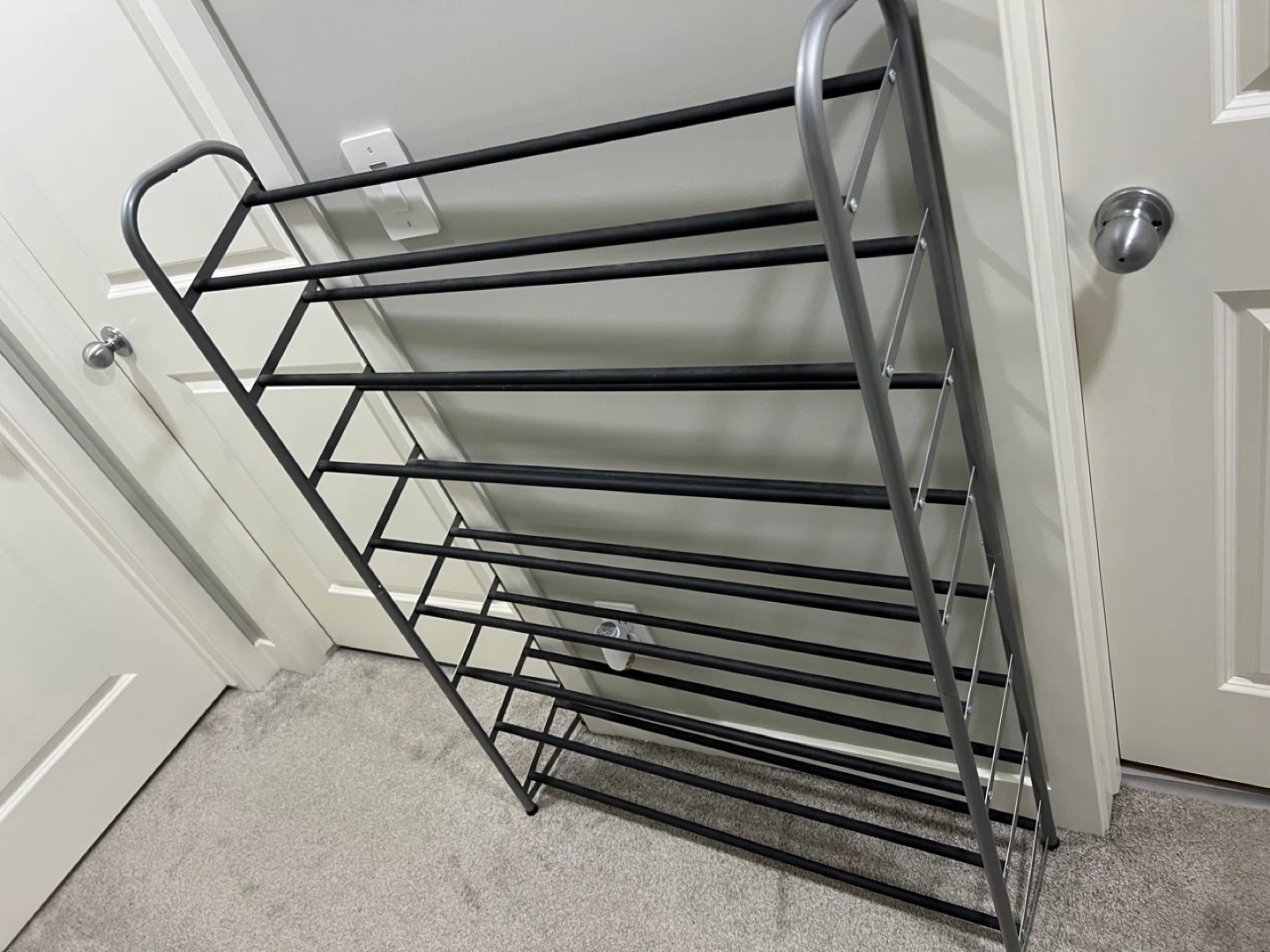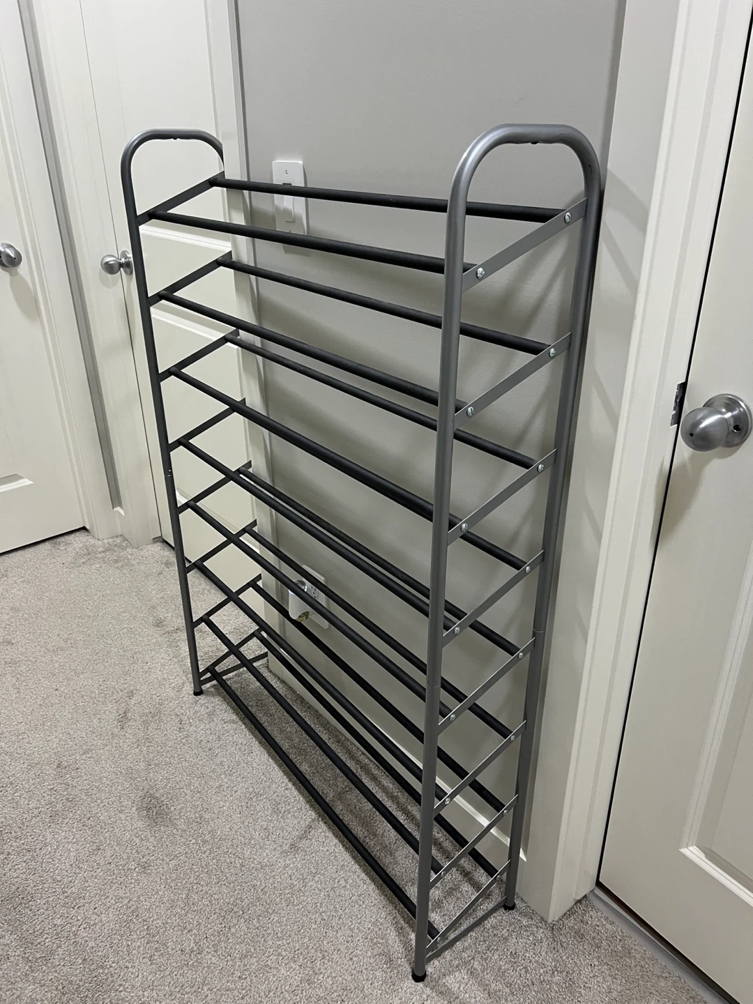 Declutter your entryway with this handy shoe rack! It's in great shape and ready to organize your footwear. This rack holds up to 35 pairs of shoes, so you can say goodbye to shoe piles