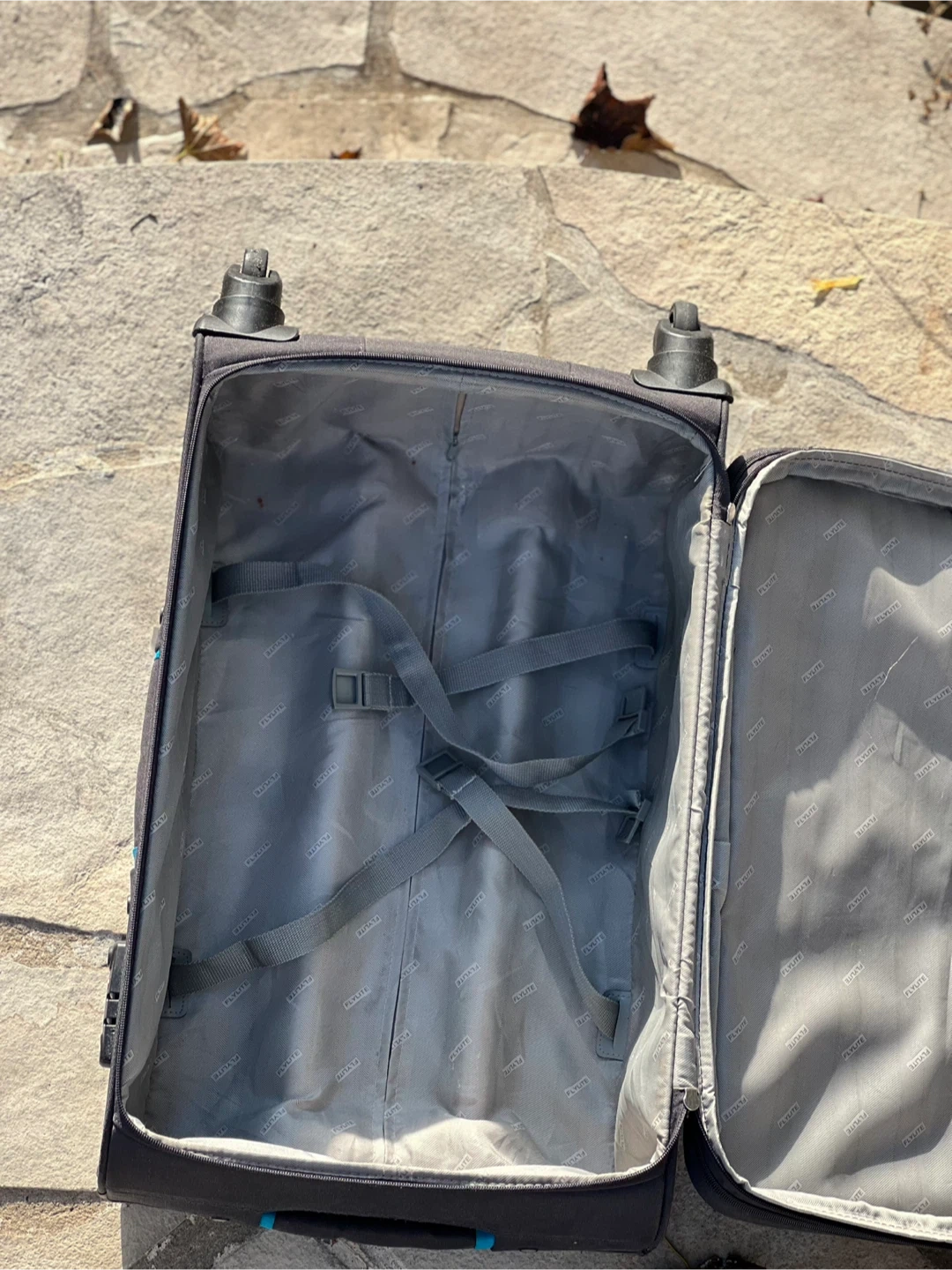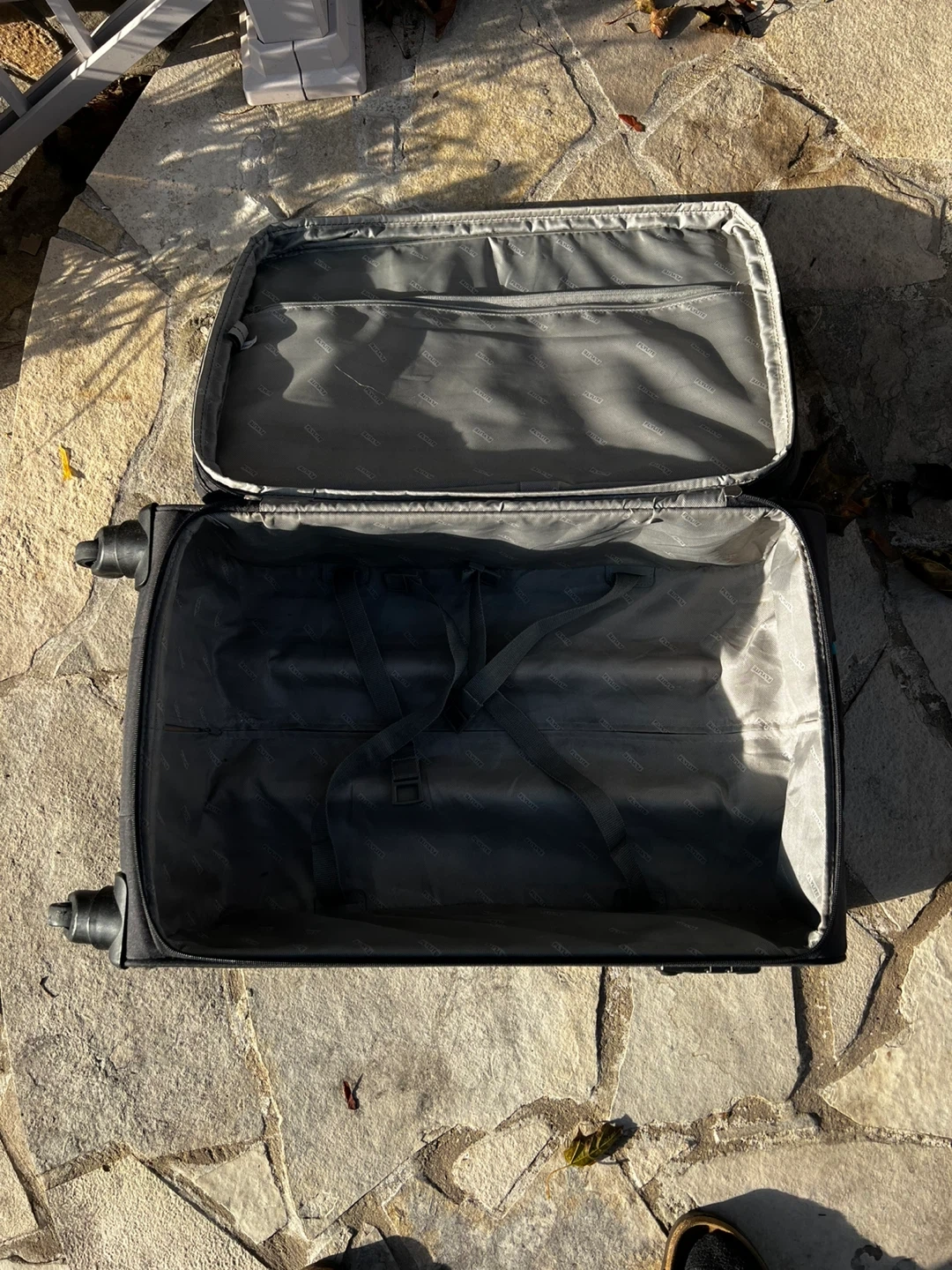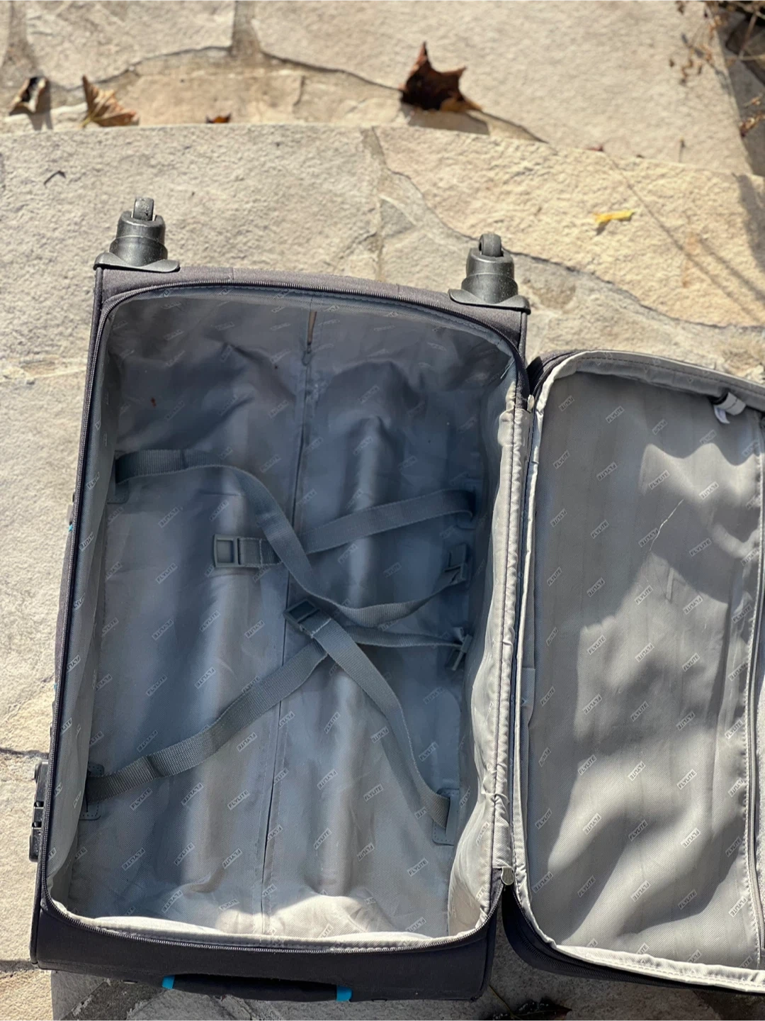 This is a Flylyte carry-on suitcase in gray. It has a retractable handle and wheels for easy transport. Perfect for your next trip!