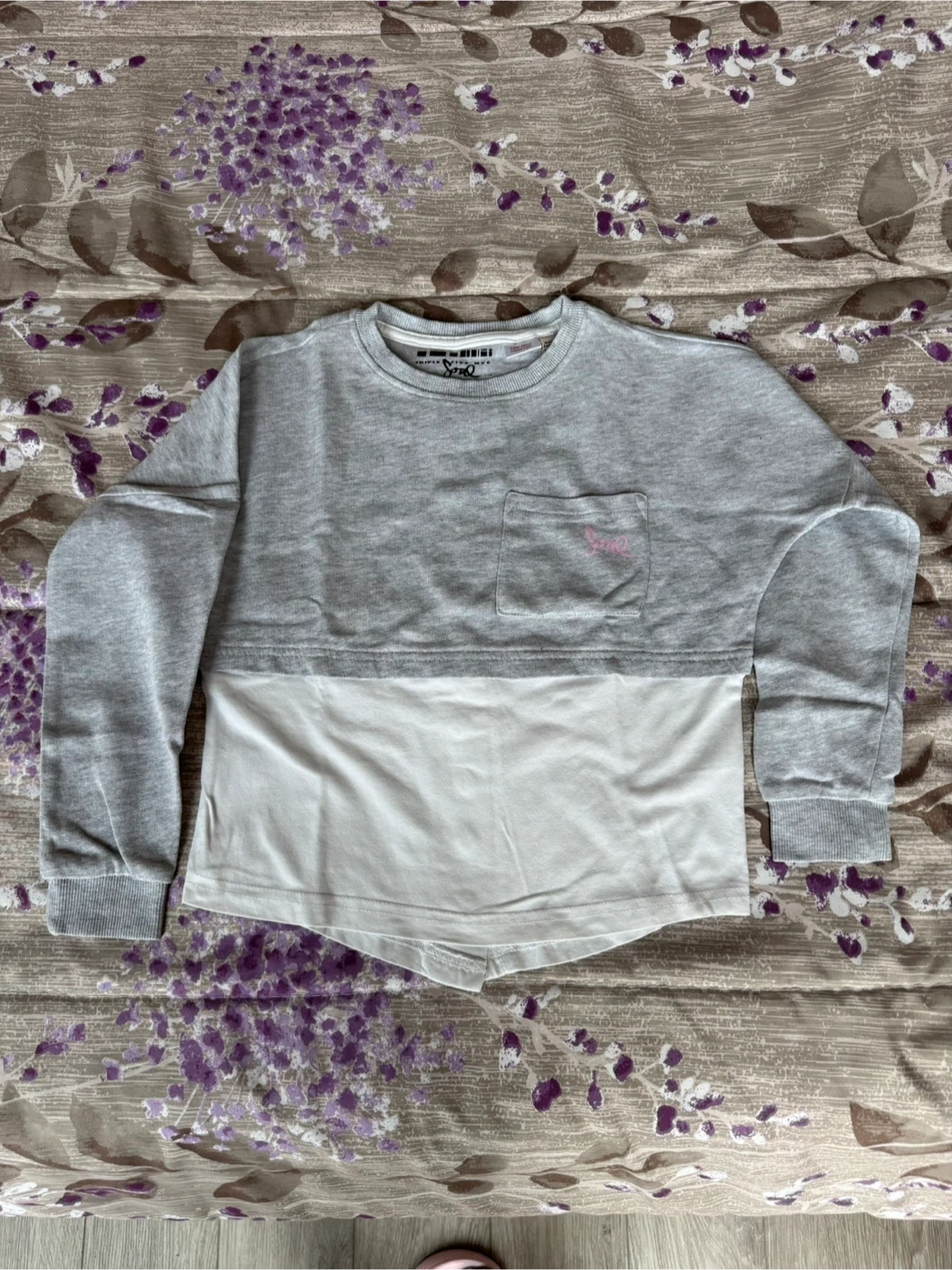 Girl's top from Triple Five Soul NYC in size 6 (116 cm). It features a grey upper body made of 90% cotton and 10% viscose, and a white lower body made of 100% cotton