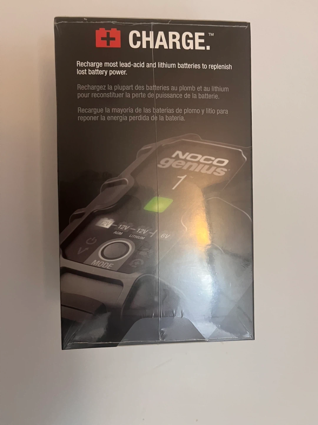 Selling a brand new NOCO Genius 1 Battery Charger and Maintainer! It's still in its original packaging and has never been used.
