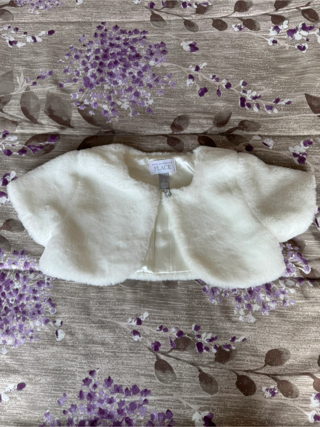 A cute little bolero from The Children's Place! It's a size 2T and made with a soft faux fur and polyester lining. Perfect for layering over a dress for a special occasion or just to add a touch of warmth and style to any outfit!