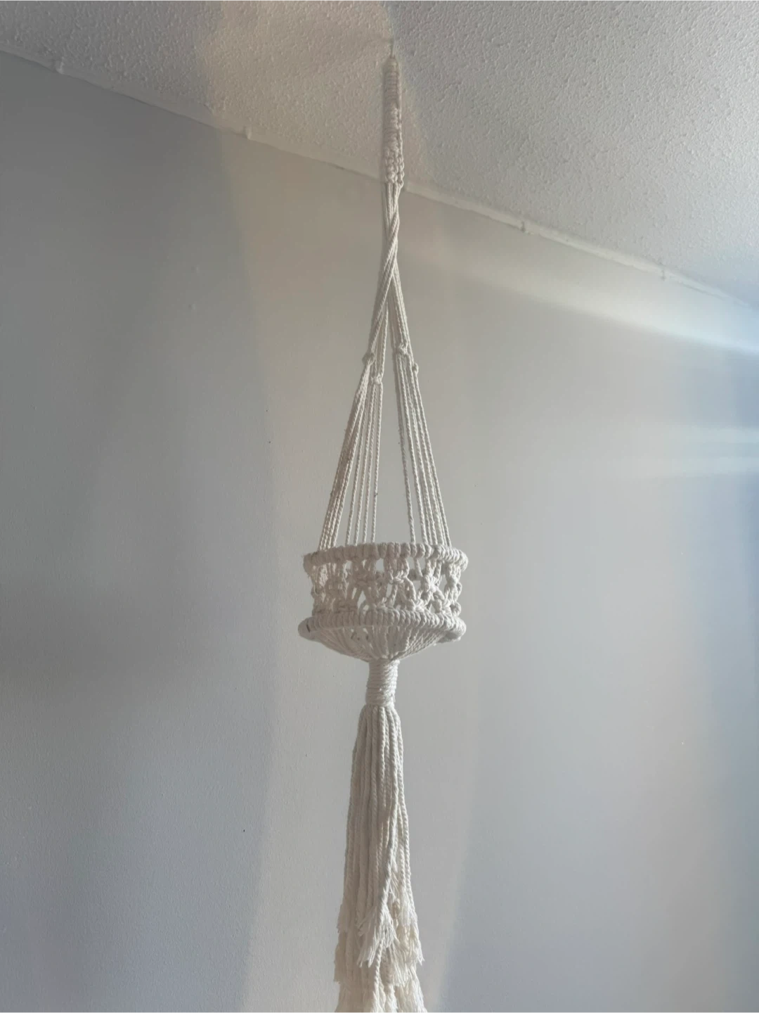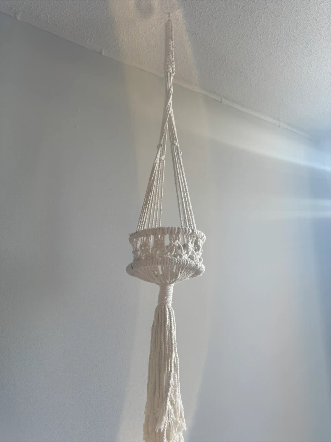 Add a touch of boho charm to your home with this macrame plant hanger! It's perfect for displaying your favourite plants and adding a cozy vibe to any room. It's in great condition and ready to find a new home!