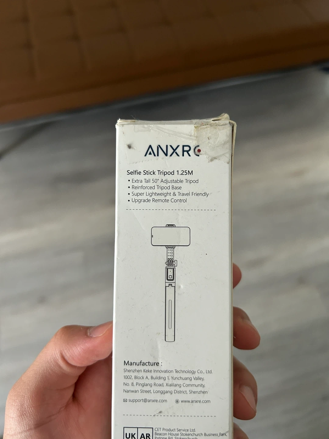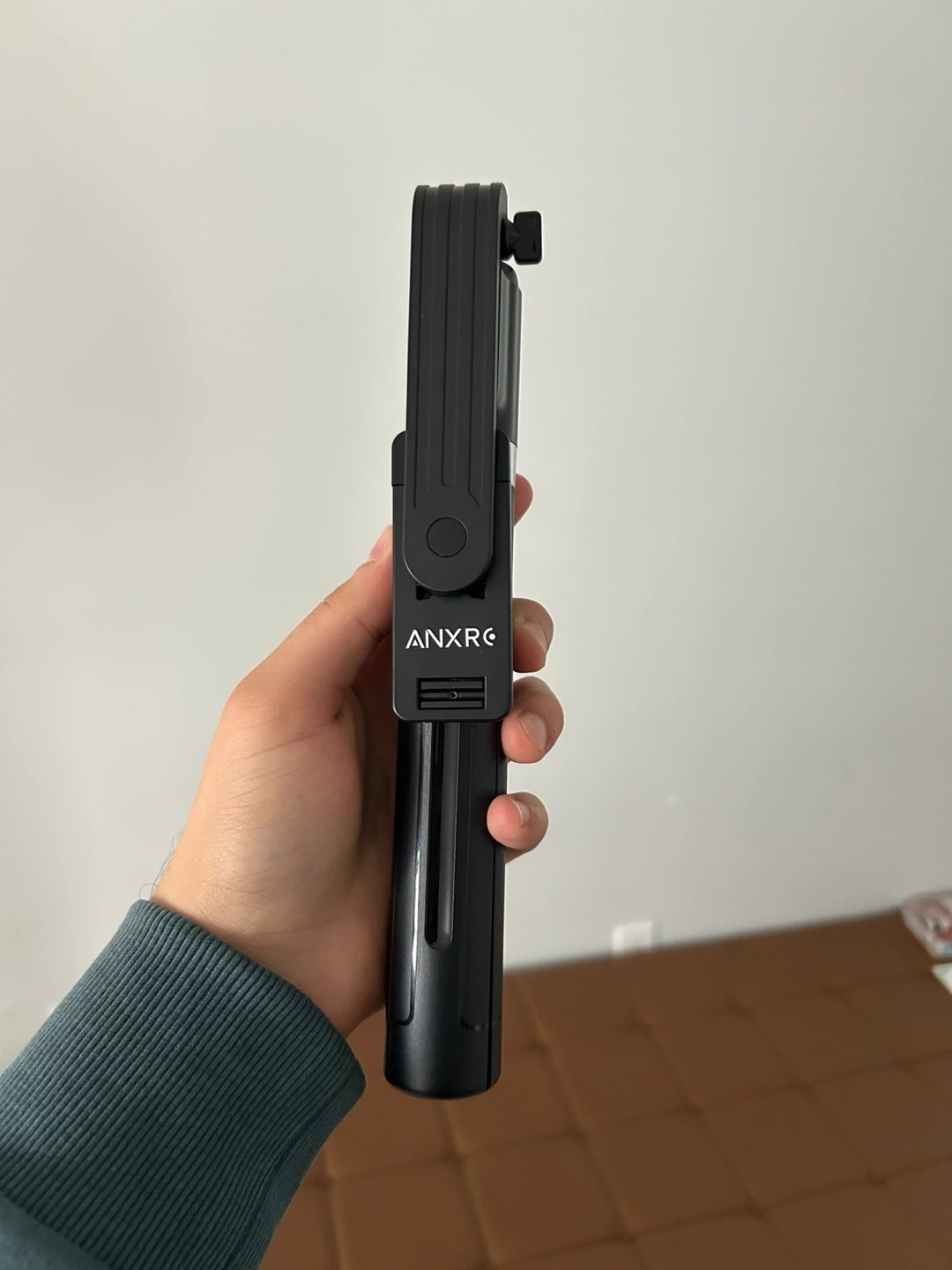 Selling an ANXRE selfie stick tripod in black. It's in great condition and comes with the original box! Perfect for taking photos and videos on the go.
