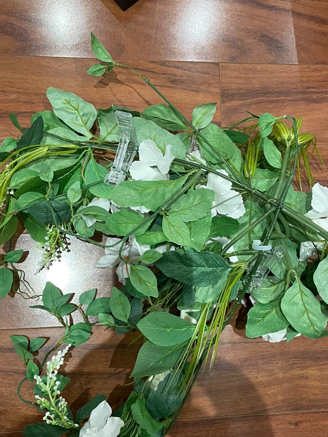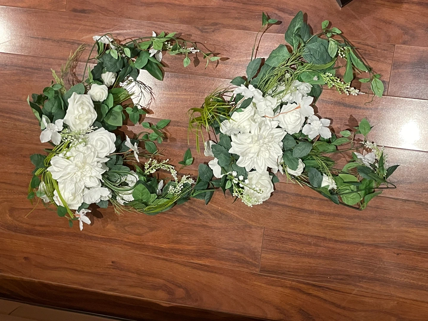 Set of 2 artificial floral swag with clips. Each flower swag measures approximately 26 inches long x 22 inches wide x 6 inches high when fluffed (including leaf vines).