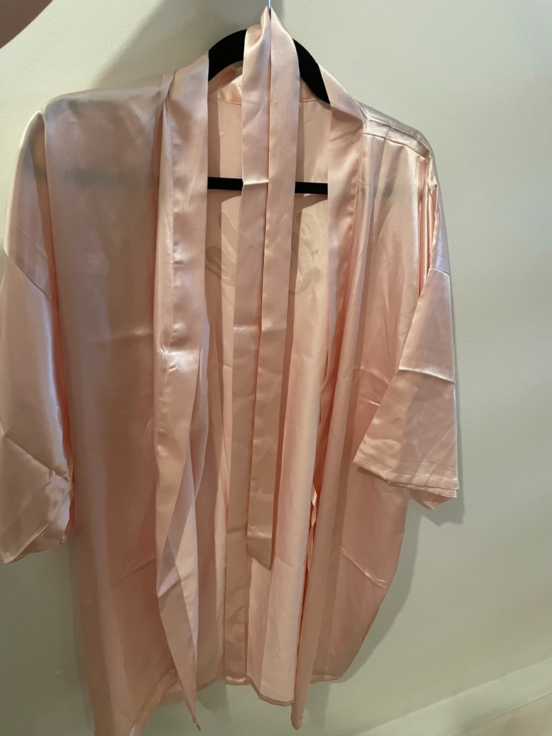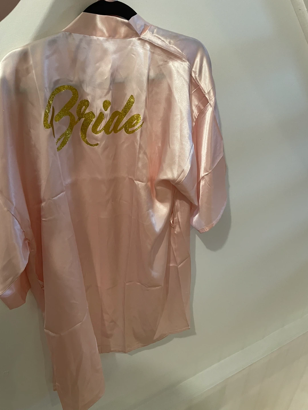 Selling a lovely pink satin robe with 'Bride' in gold glitter on the back. It's perfect for getting ready on your special day or for a bachelorette party! The robe is in great condition and ready for a new home.