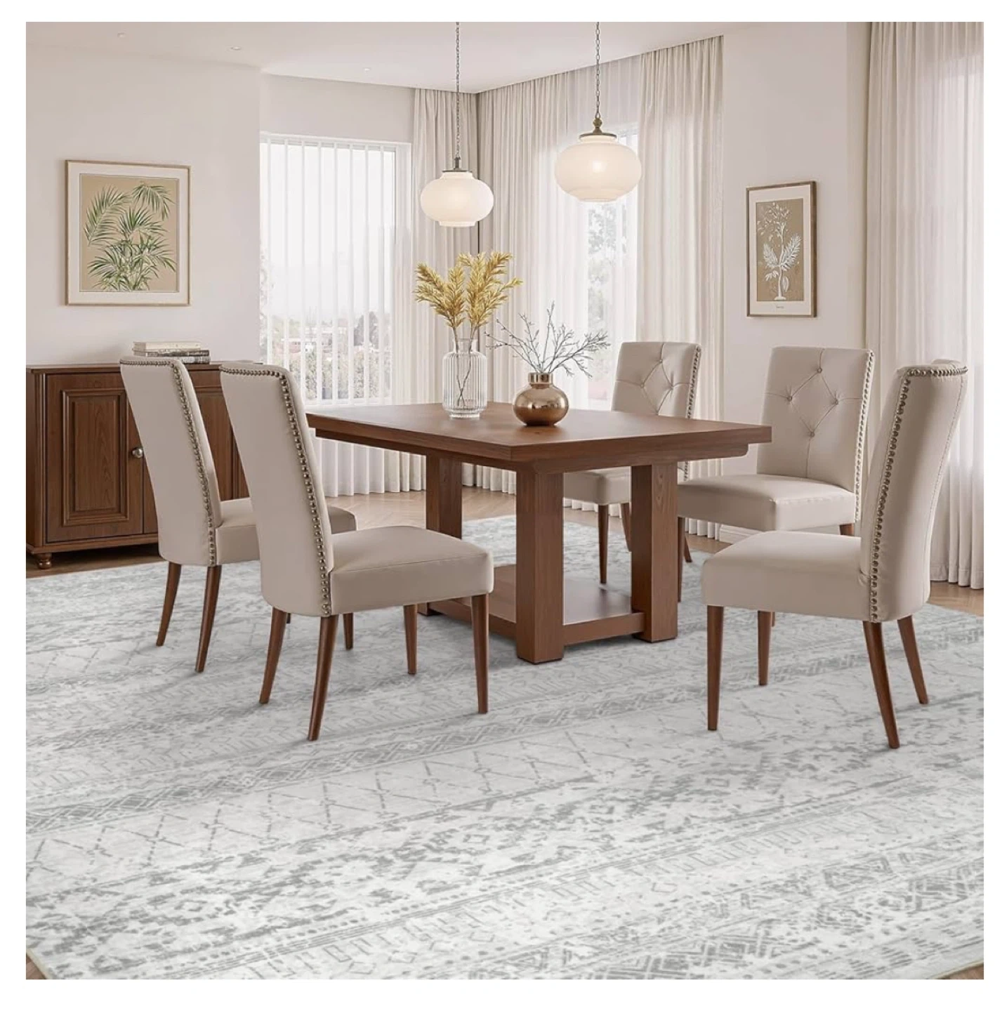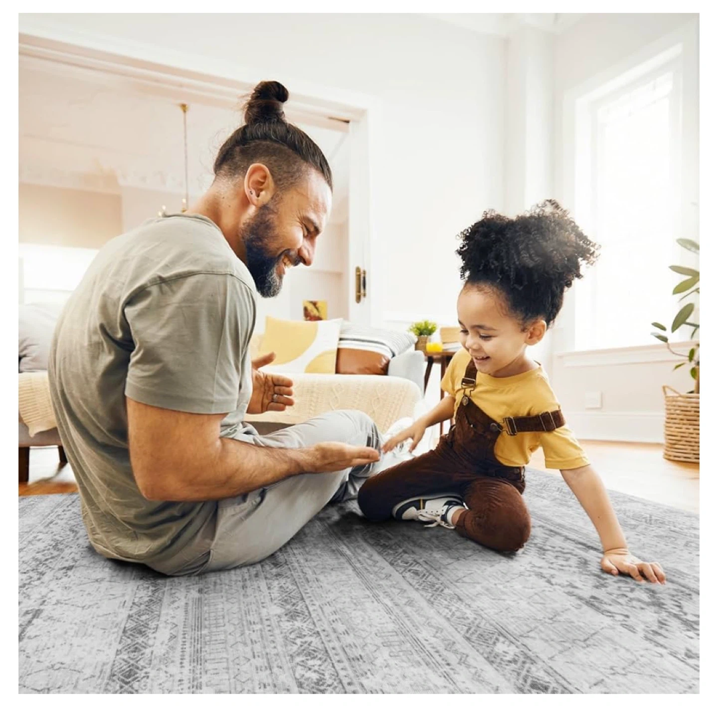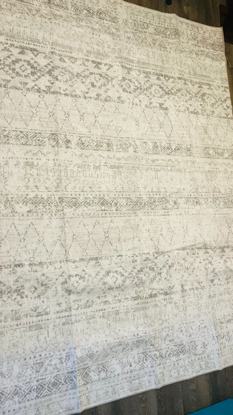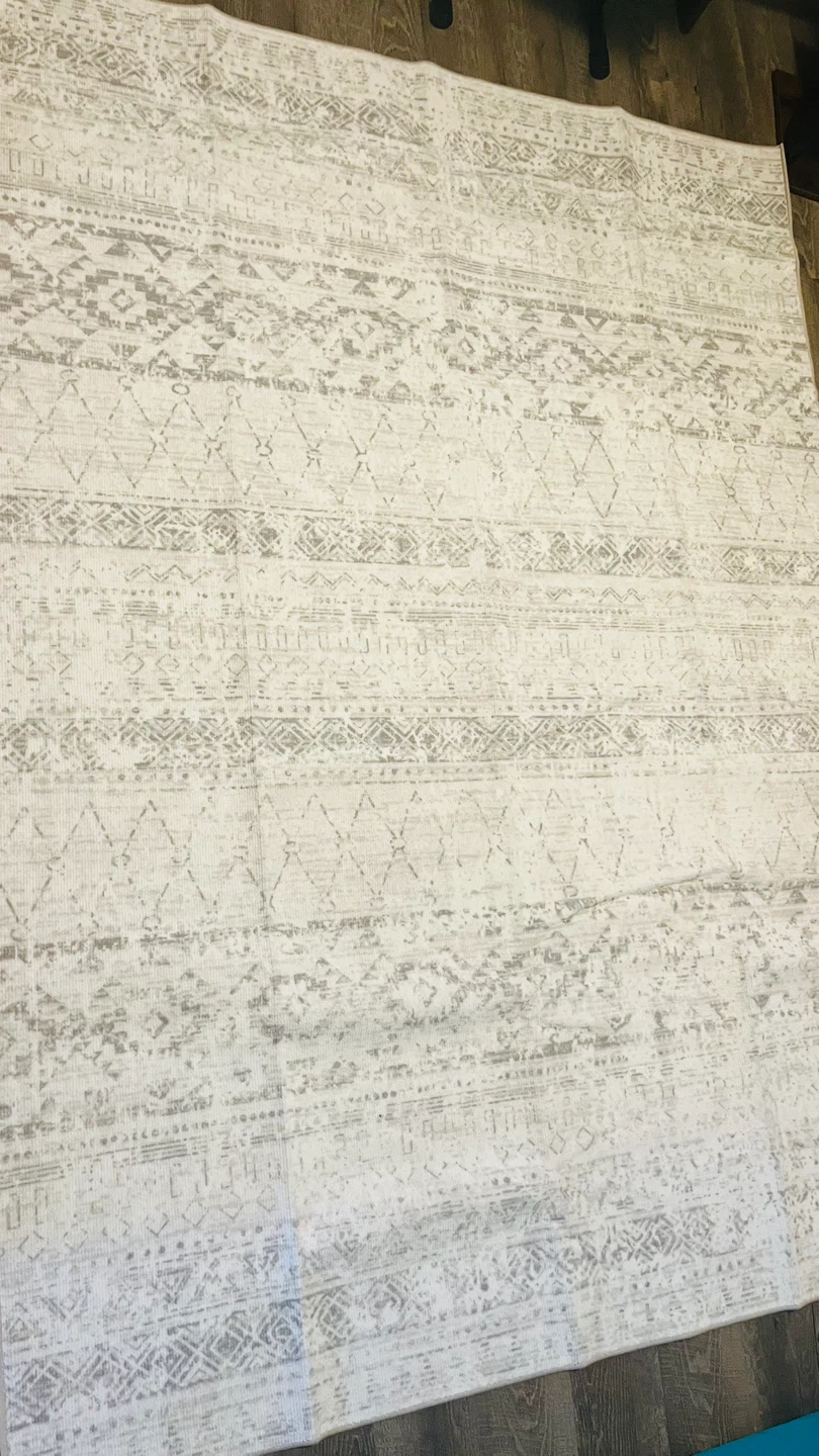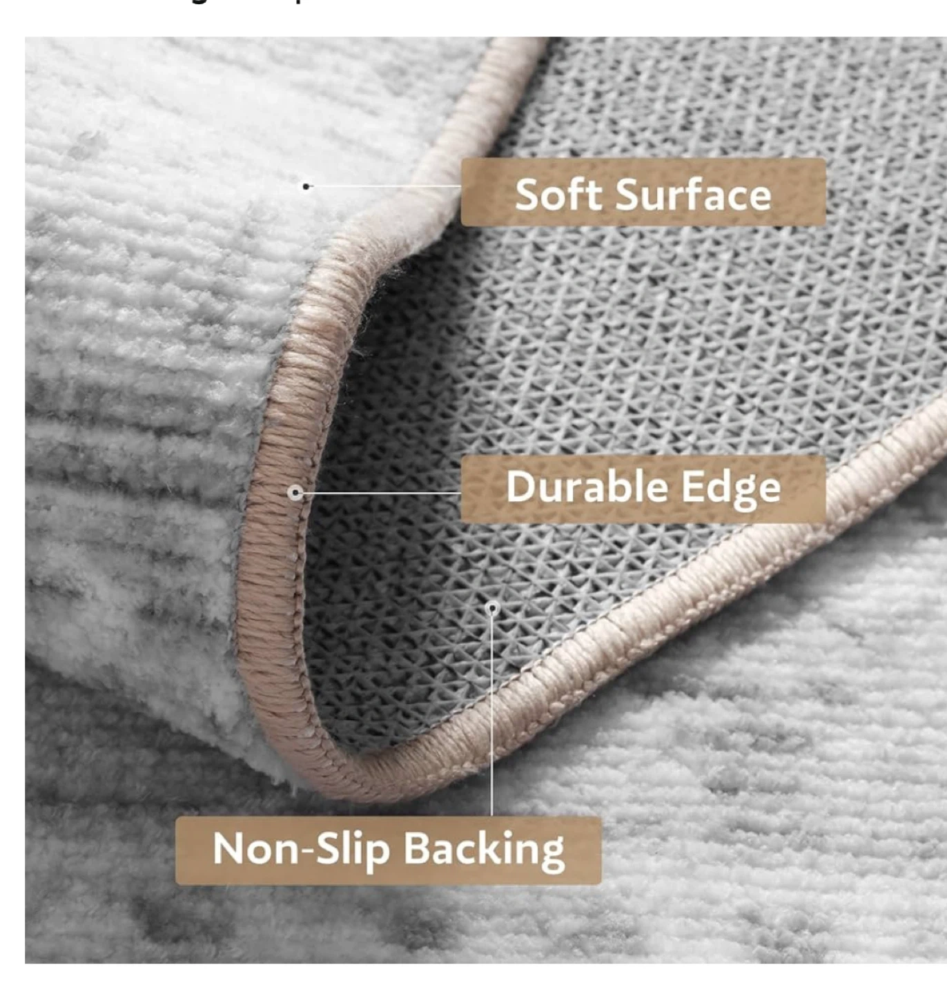 This area rug features a soft surface and a durable edge, perfect for any room in your home! It also has a non-slip backing, so you don't have to worry about it sliding around. It's in great condition and ready to add some style to your space