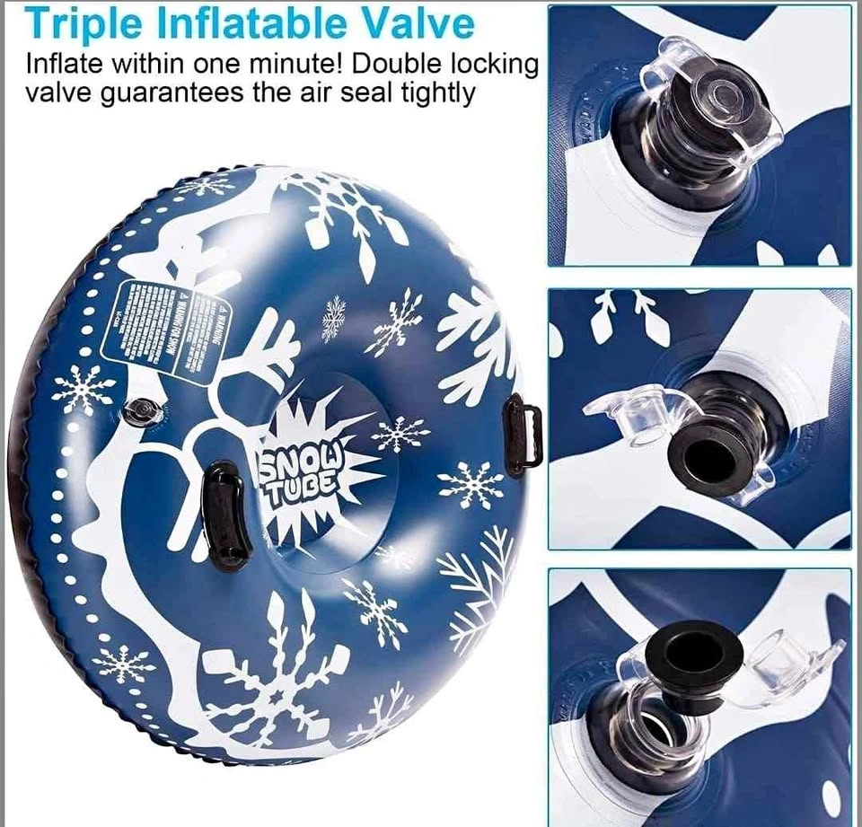 【EASY INFLATION】:Super-fast inflation and deflation with the 3 in 1 inflatable valve.Just use an air pump to inflate and the snow tube will be ready to use in seconds