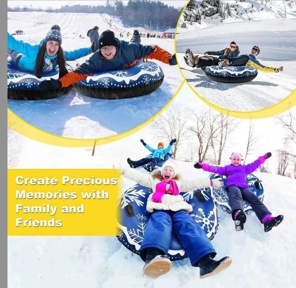 【Safe use】:Snow tube is designed with larger size,big enough for both children and adults.Streamlined circle design without any protrusions to protect childrens safety.It allows everyone of your families to enjoy the fun of snow tubing.Best Christmas gift for family and friends