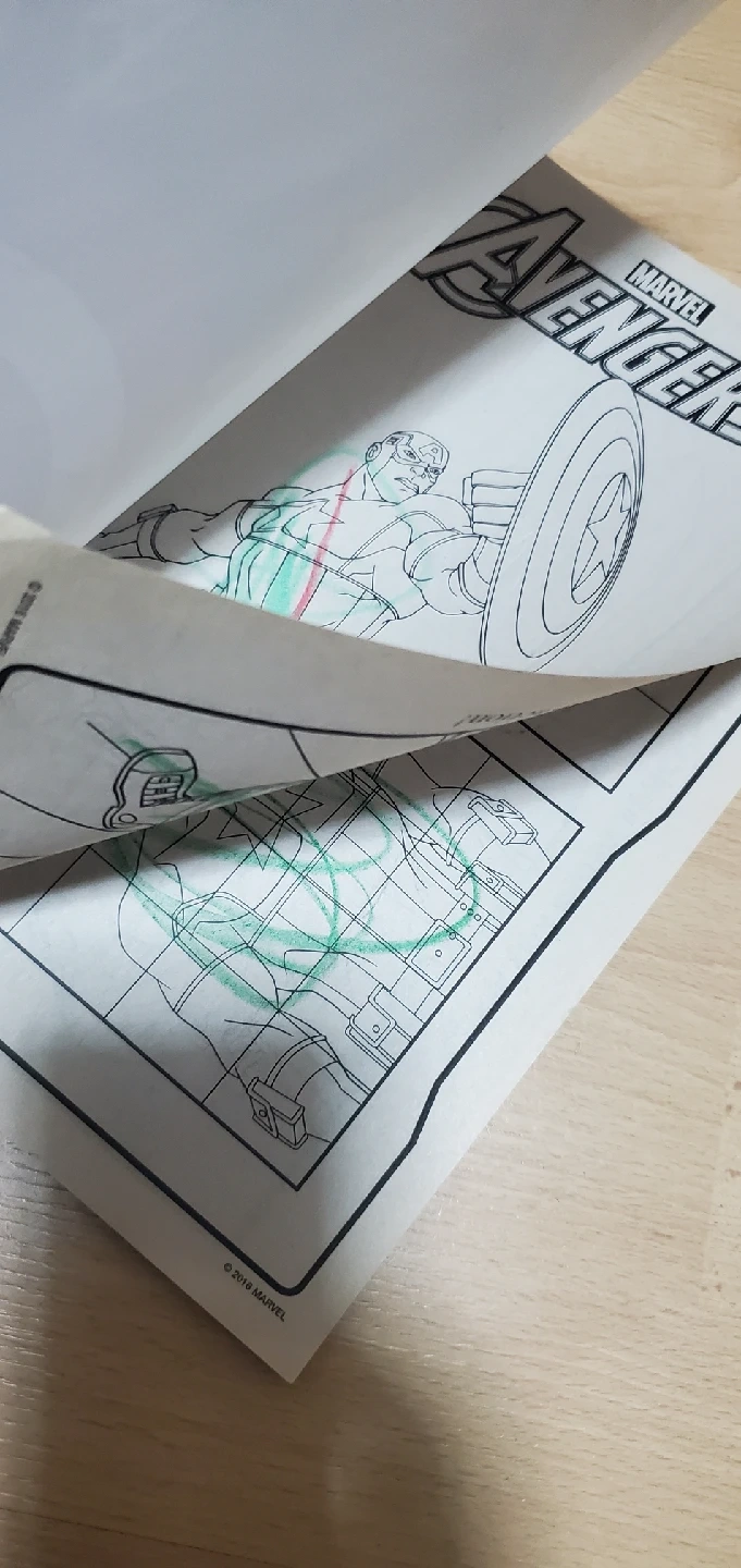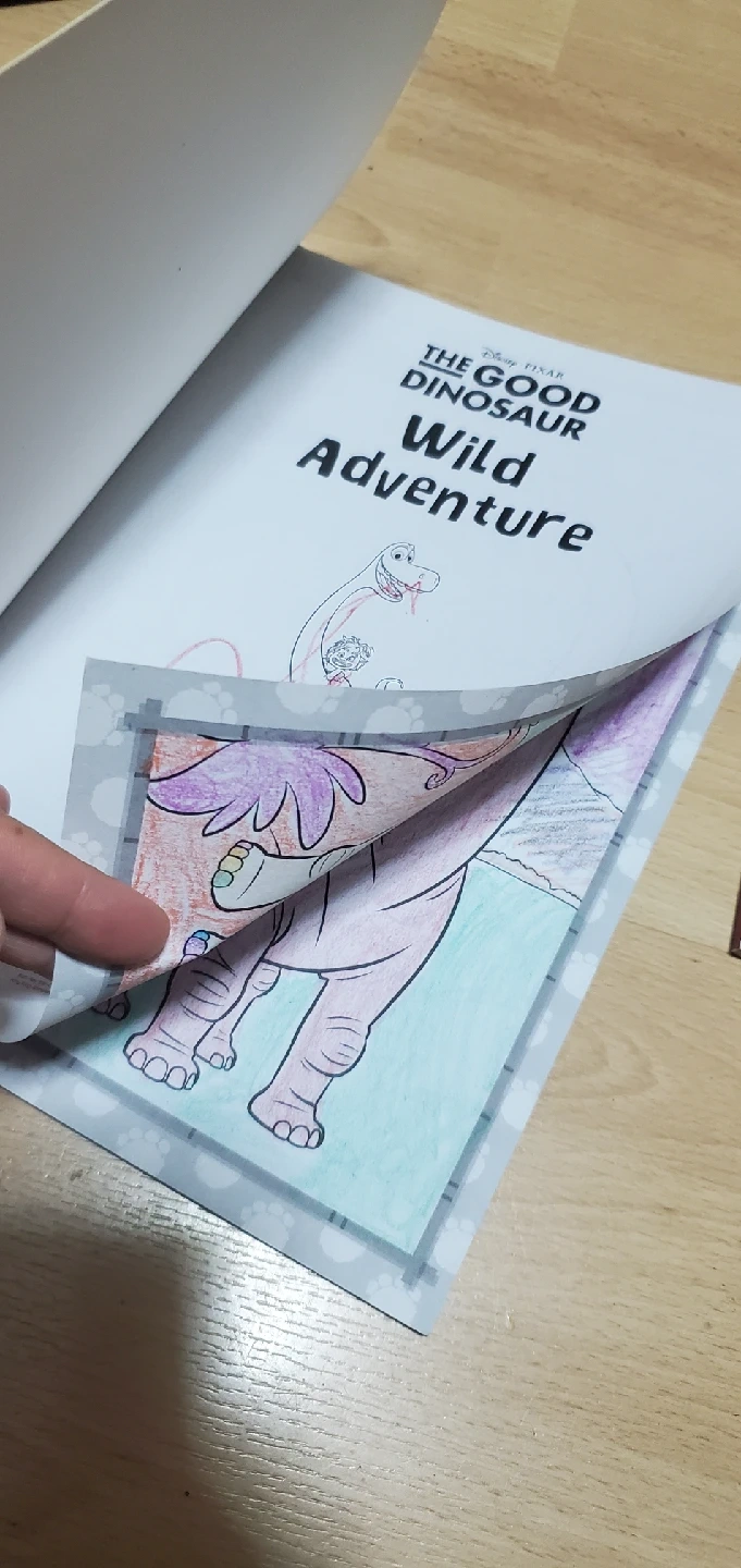 (3 pages from the dinosaur book was colored and 4 pages from the marvel book was colored)