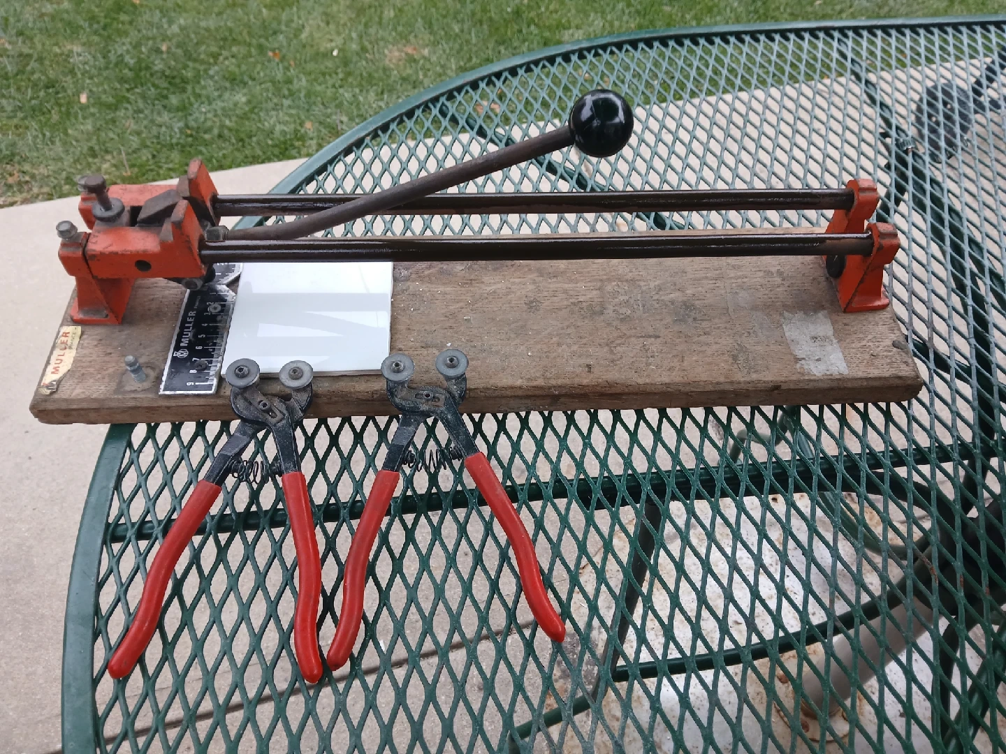 Here are ( 2) tile nippers, (1) End cutter nippers pilers and a tile cutter. In good condition, everything $50 AS IS. CASH only, no zelle, no Paypal.