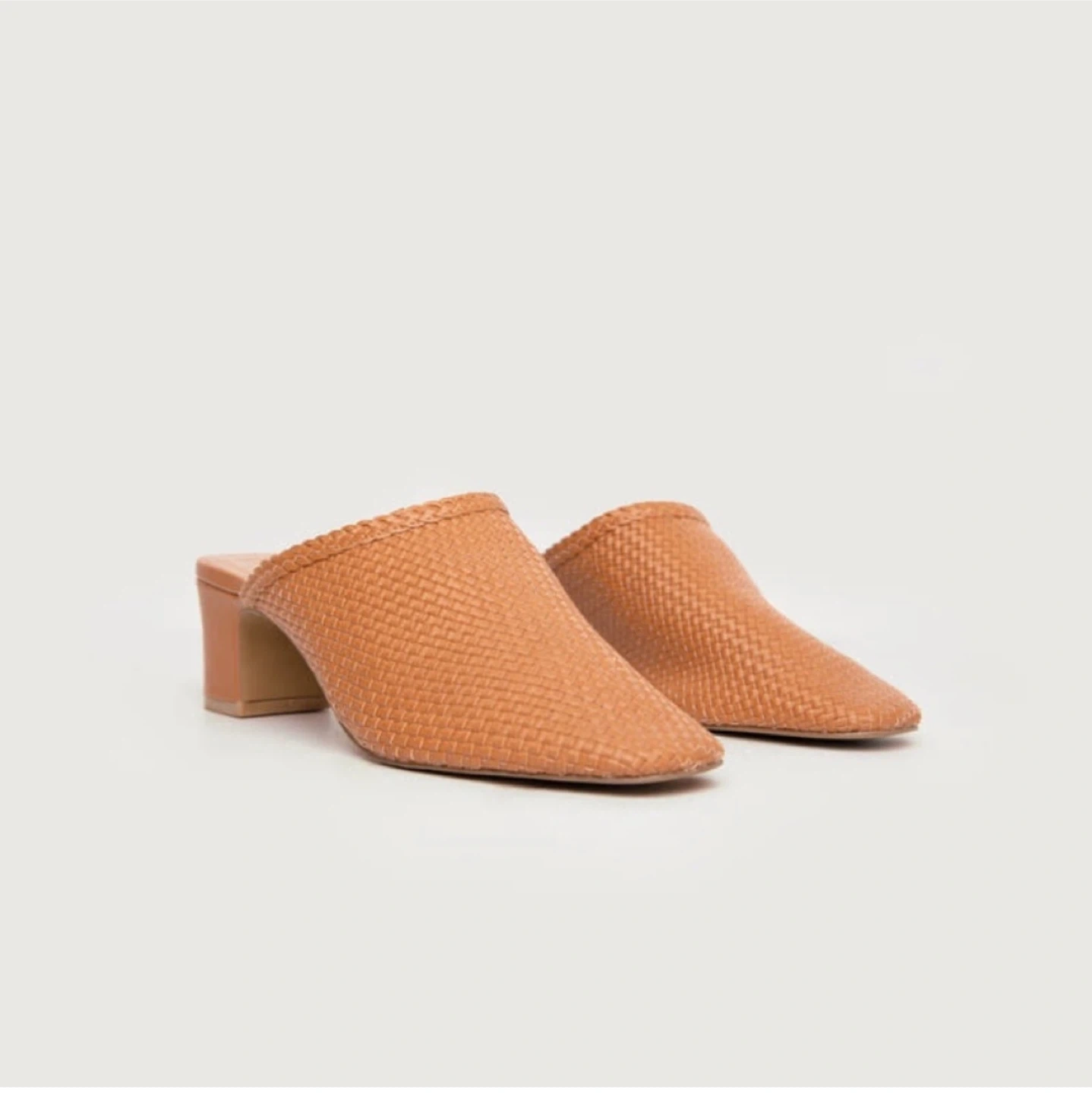 These stylish brown woven heeled mules are perfect for adding a touch of sophistication to any outfit! They're in great condition and ready for a new home Oak + fort Size US 7