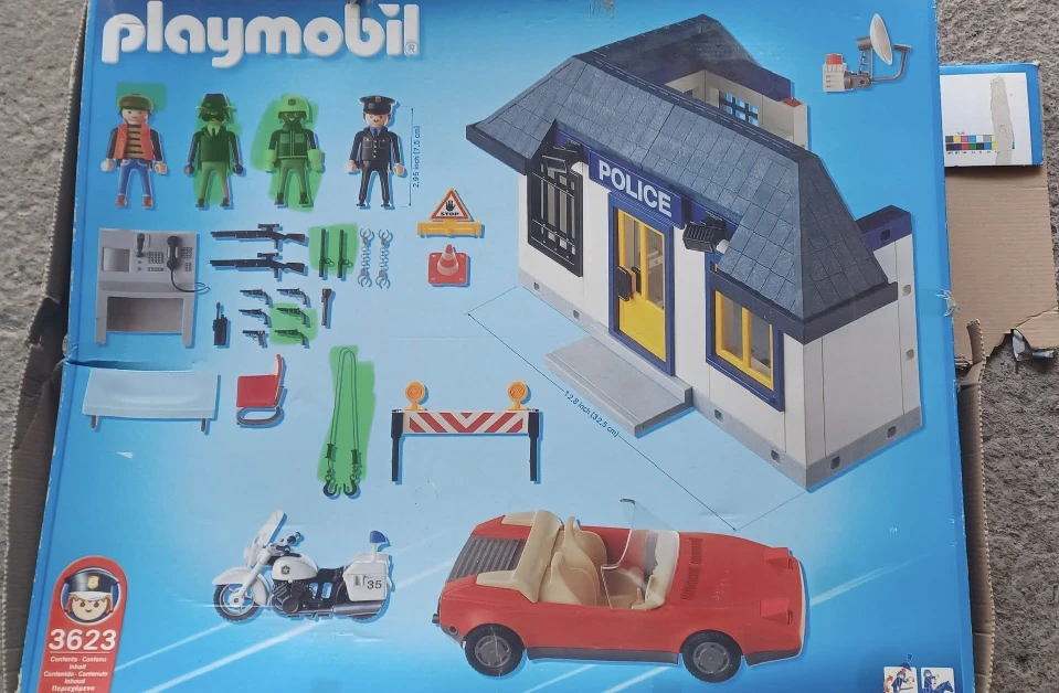 I'm offering a used Playmobil Police Station, set 3623, a classic playset for imaginative adventures! This set comes with the main police station building, a red car, and various accessories to create engaging scenarios. As a used item, it showcases some signs of play, but it is still in good condition for hours of fun.