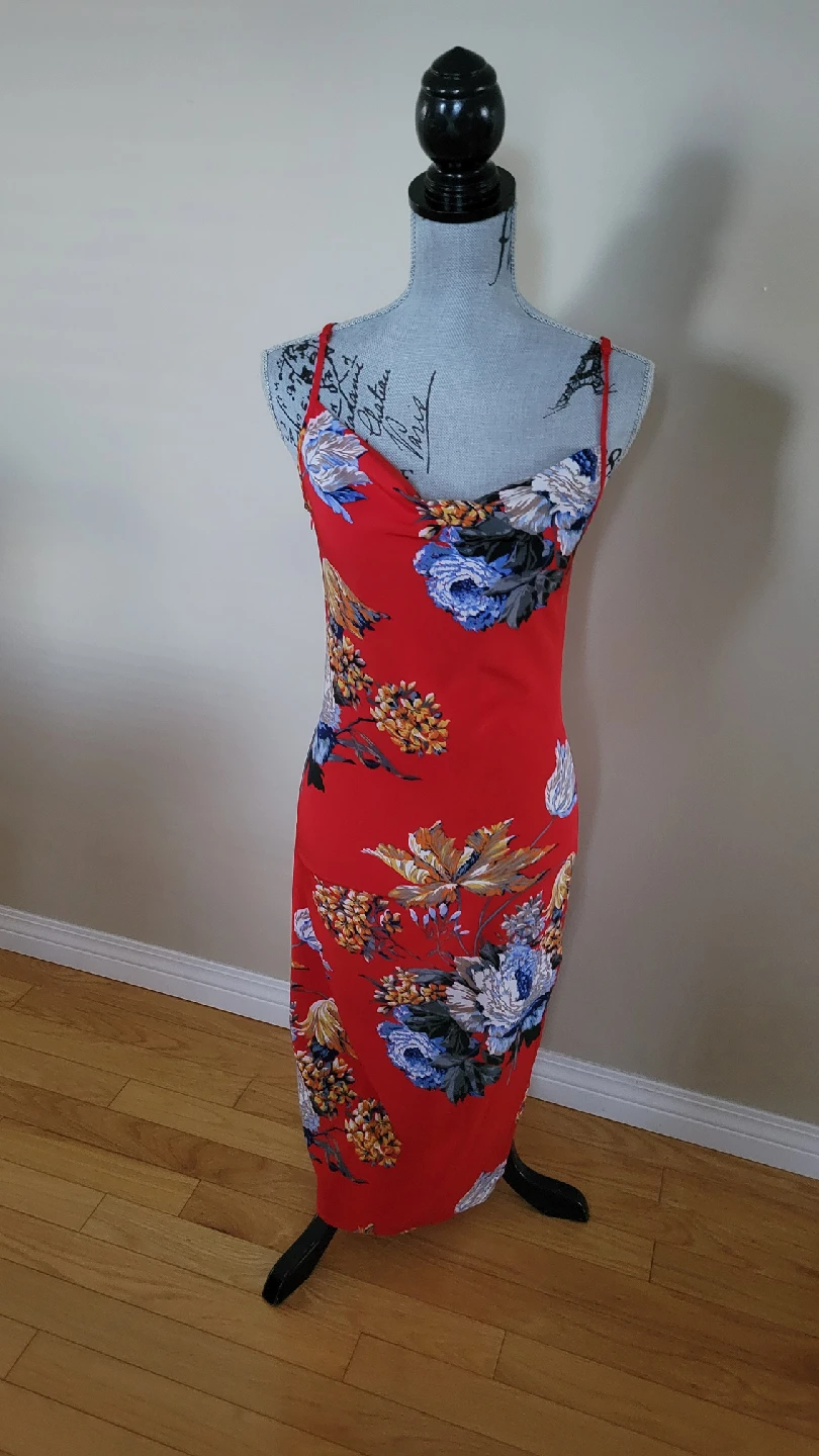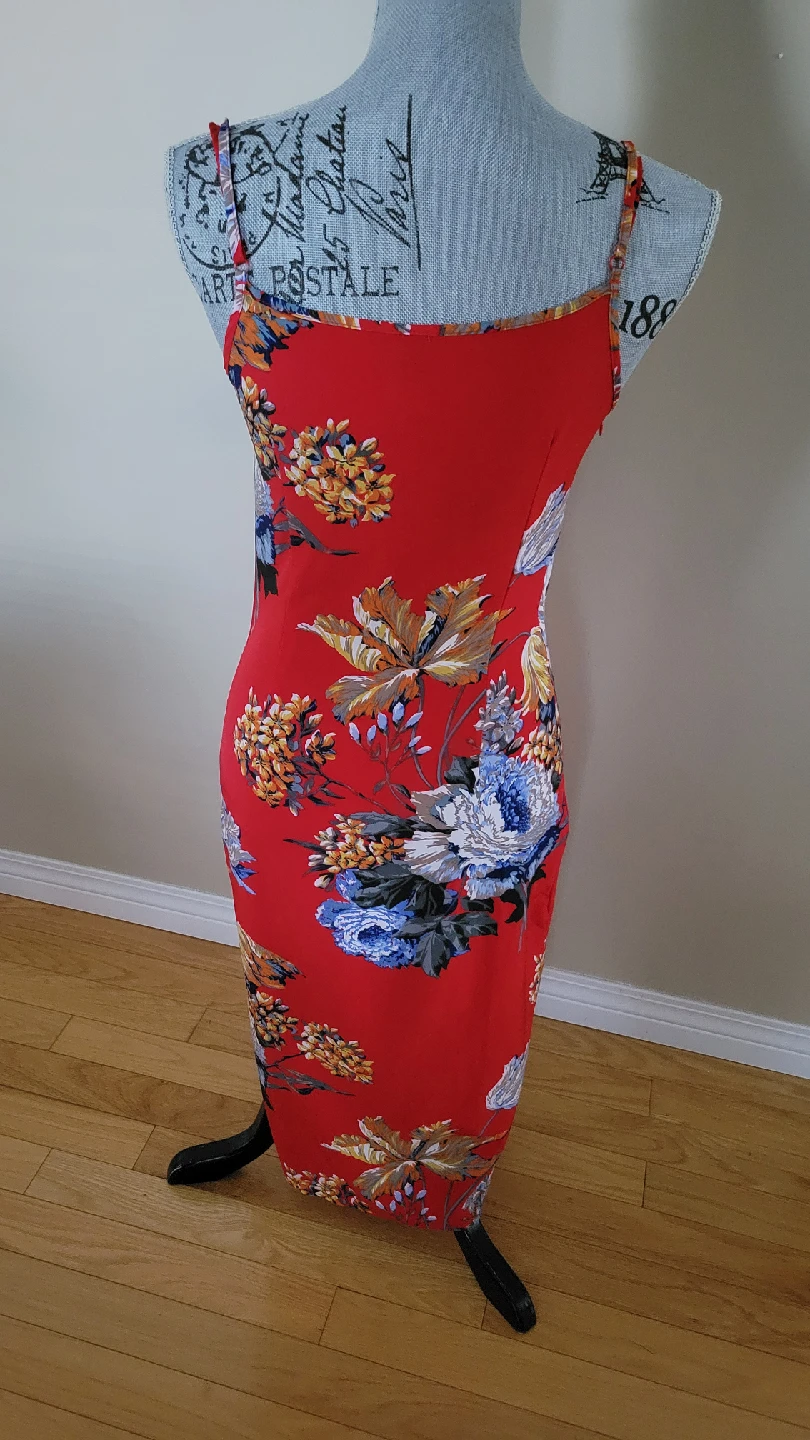 Like New Floral Print Red Bodycon Dress Size 2 to 4