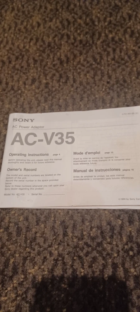 I'm selling a used Sony AC-V35 AC Power Adaptor, perfect for charging your Sony