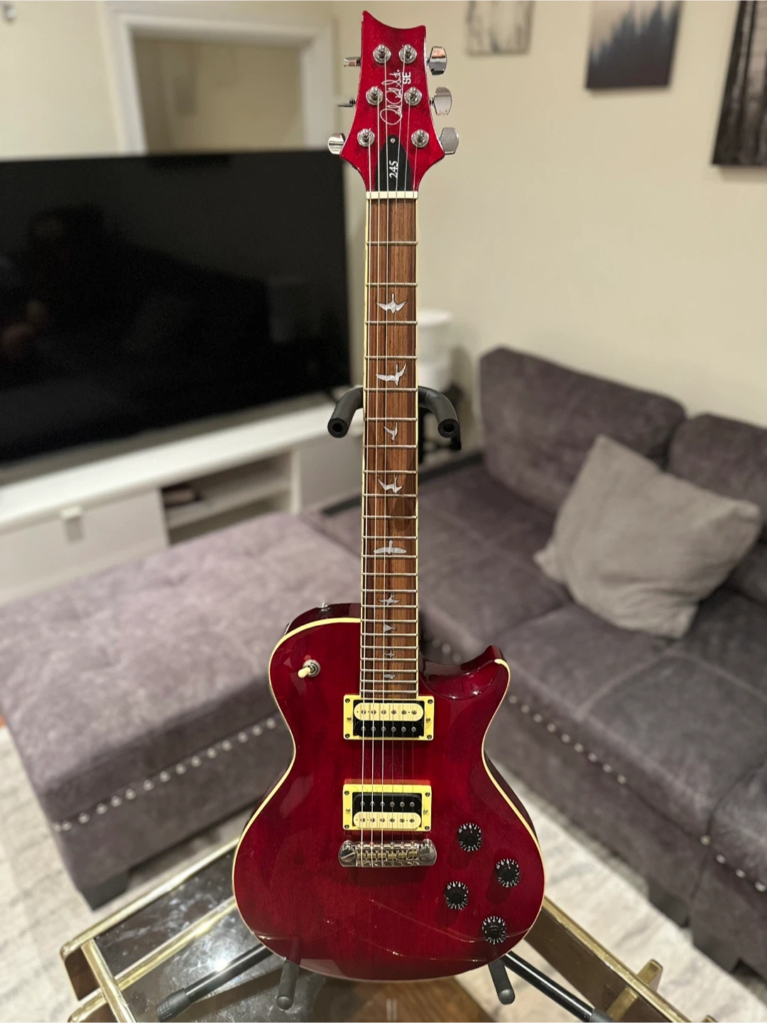 Selling a PRS SE 245 electric guitar in a beautiful red finish! It's in good condition and ready to play. Great for anyone looking for a quality instrument! for pick up , cash only