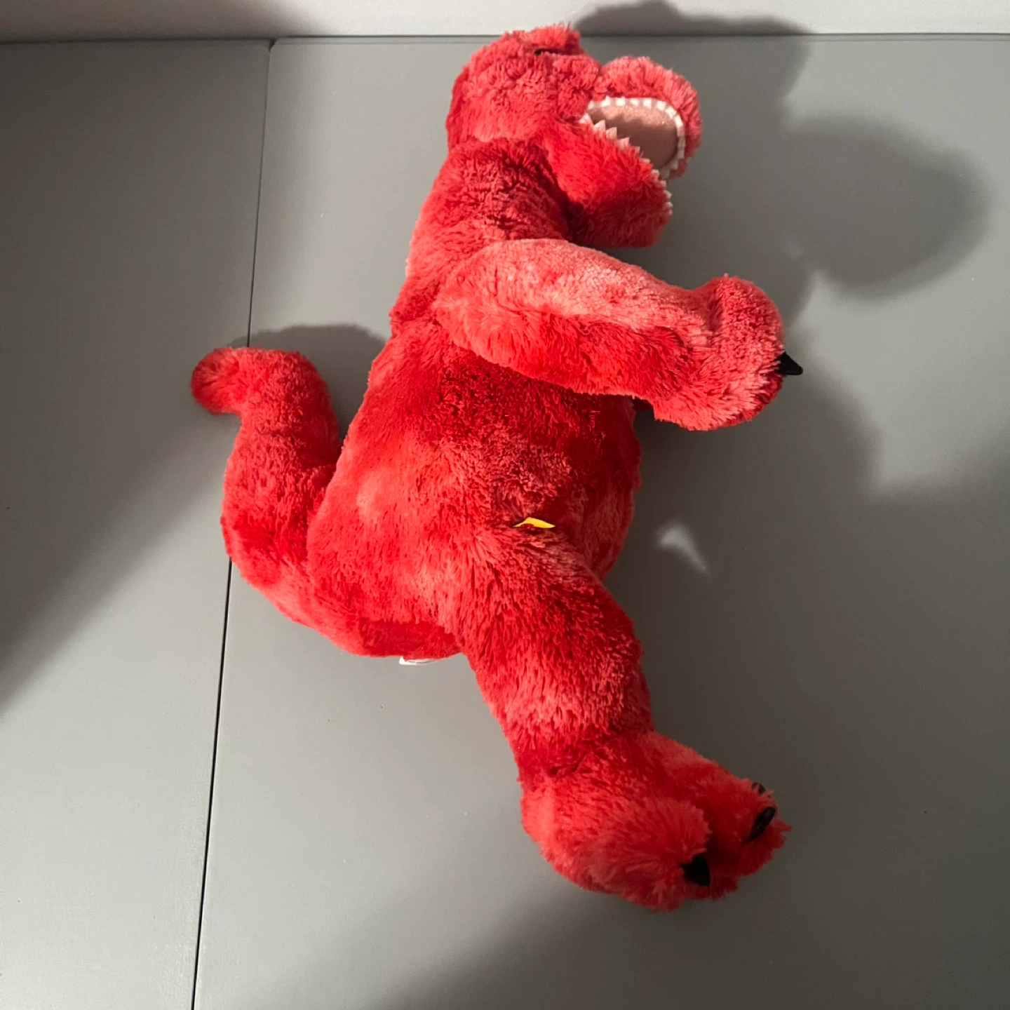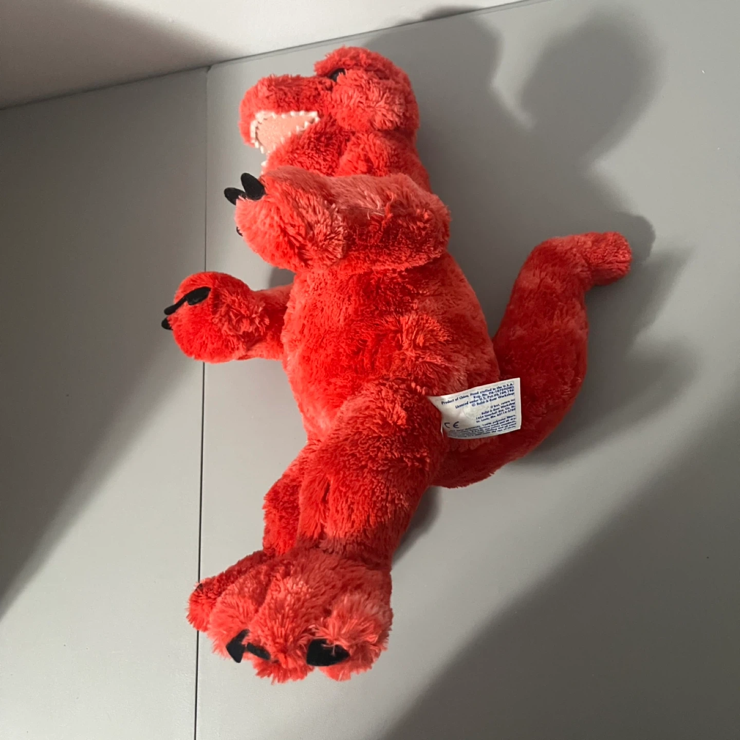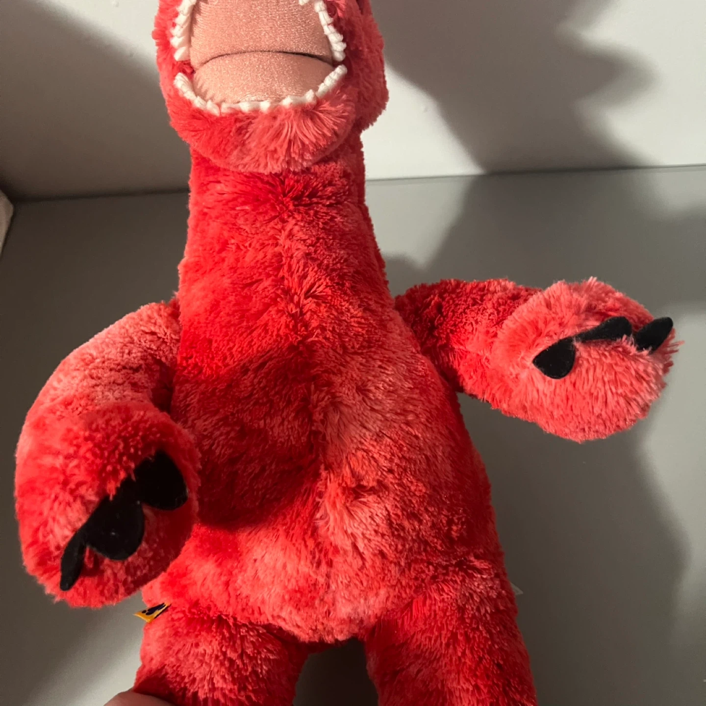Selling a cute red dinosaur plush toy! It's in great condition and would make a wonderful addition to any collection or a fun toy for a child. The plush is soft and cuddly, perfect for snuggling.
