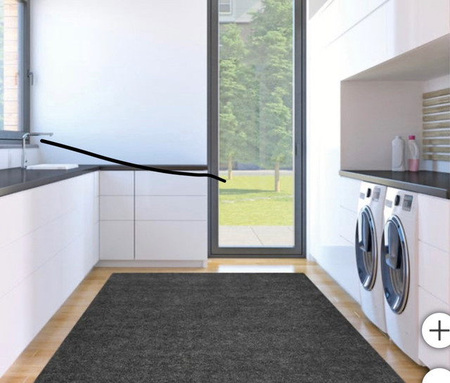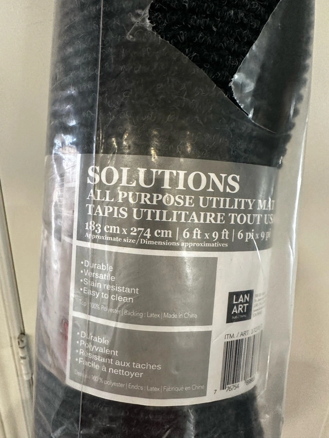 Pickup from Ajax. This brand-new Solutions All Purpose Utility Mat measures 6 ft x 9 ft (183 cm x 274 cm), perfect for any space needing durable floor protection. Here are some highlights: * Durable * Versatile * Stain resistant * Easy to clean. If the ad is up, the mat is still available!