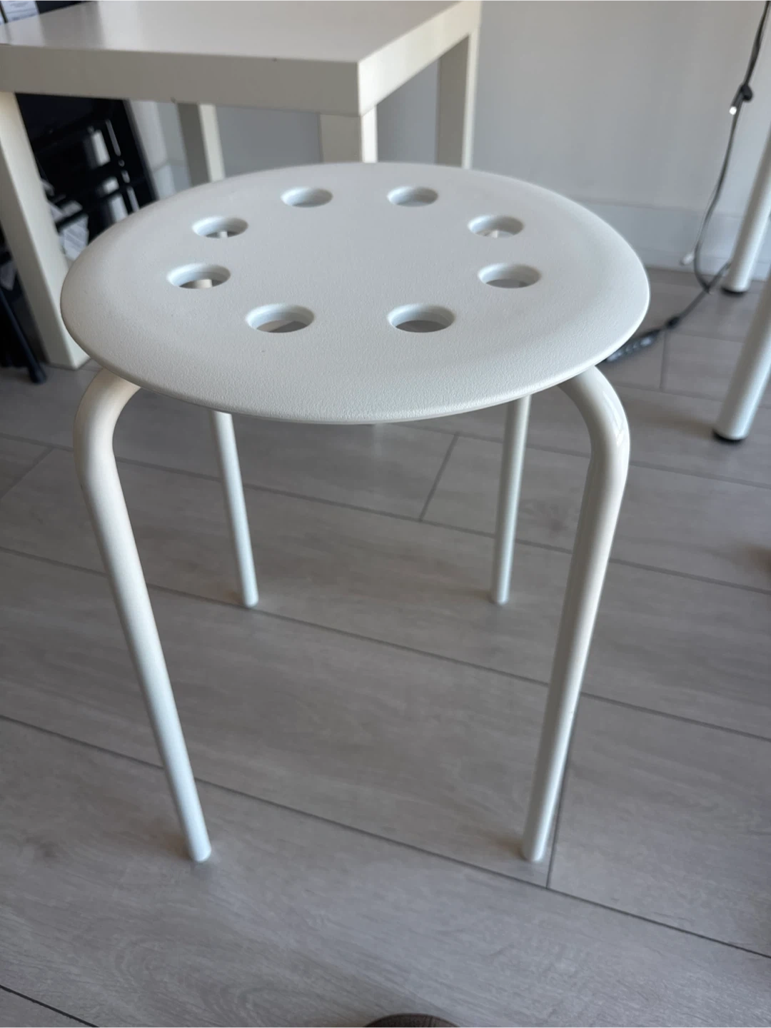 Selling a white IKEA Marius stool. It's in great condition and perfect for adding extra seating to any room! This stool is lightweight and easy to move around, making it super practical