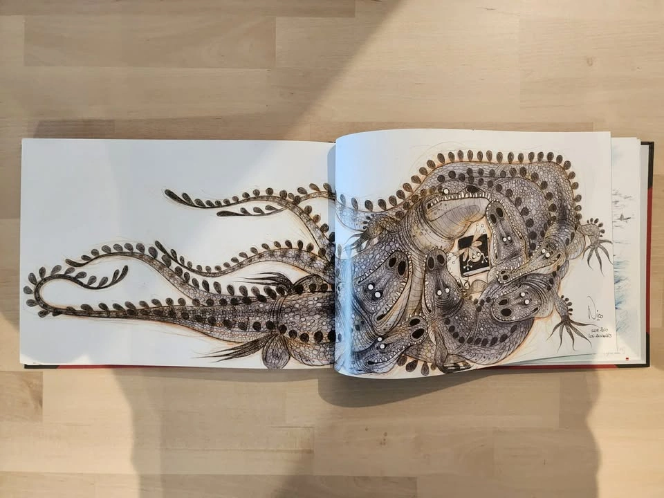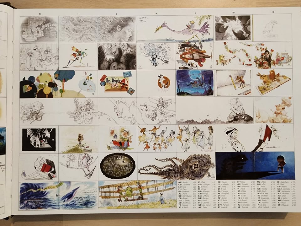 An art book containing artwork from a variety of different artists, including Hayao Miyazaki, Taiyo Matsumoto, Frederic Back, Glen Keane, Nicolas Marlet, Mike Mignola, Yuko Shimizu, Katsuya Terada, Robert Valley, Dice Tsutsumi, Robert Kondo, Gerald Guerlais, and more.