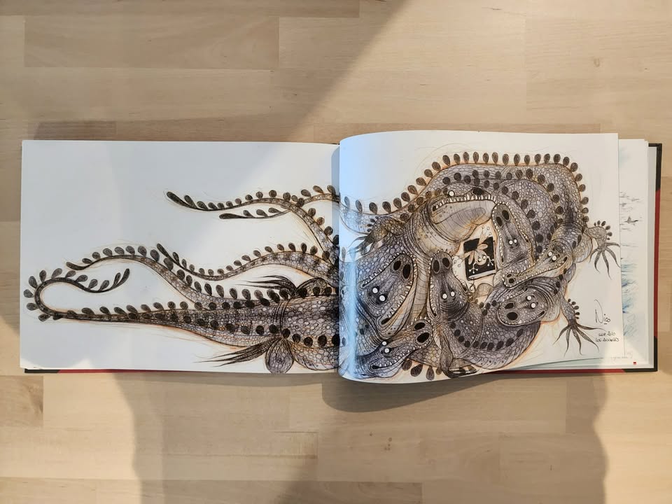 "Sketchtravel is an artistic journey unlike any other. No editorial project has ever before brought together as many visual artists around a common object. Passed between 72 artists over 5 years and across over 35,000 miles, the Sketchtravel sketchbook showcases the creativity of artists in numerous disciplines from around the world. Illustrators, animators, painters, and more each illustrated a page with their unique style before passing the book to the next artist."
