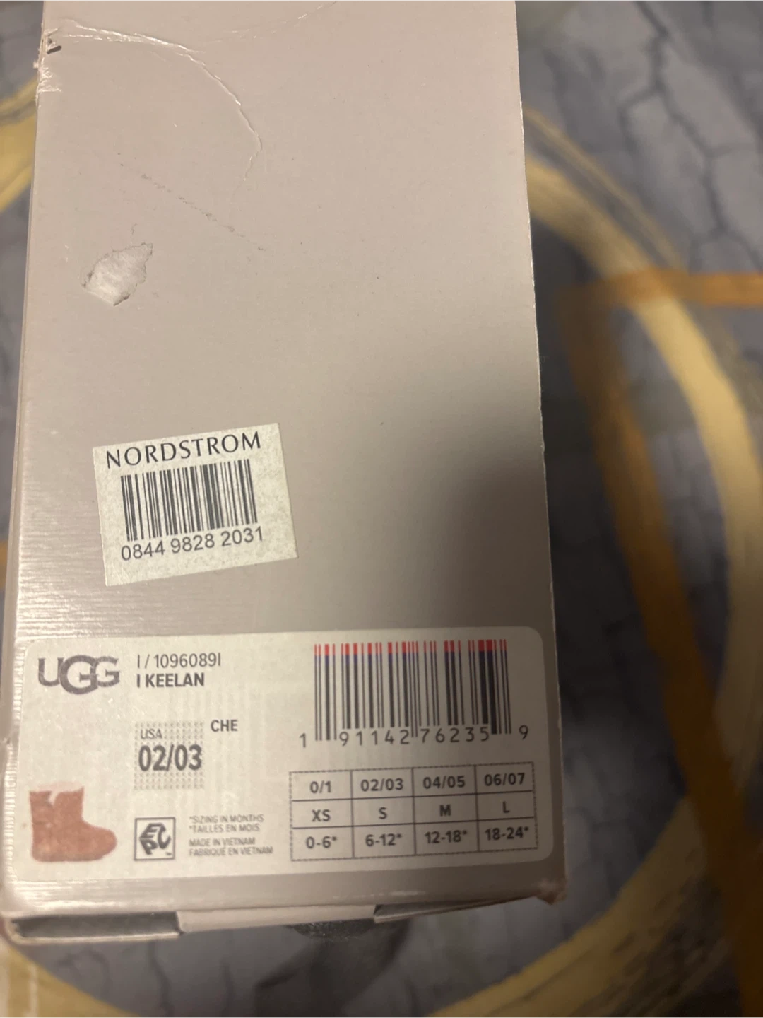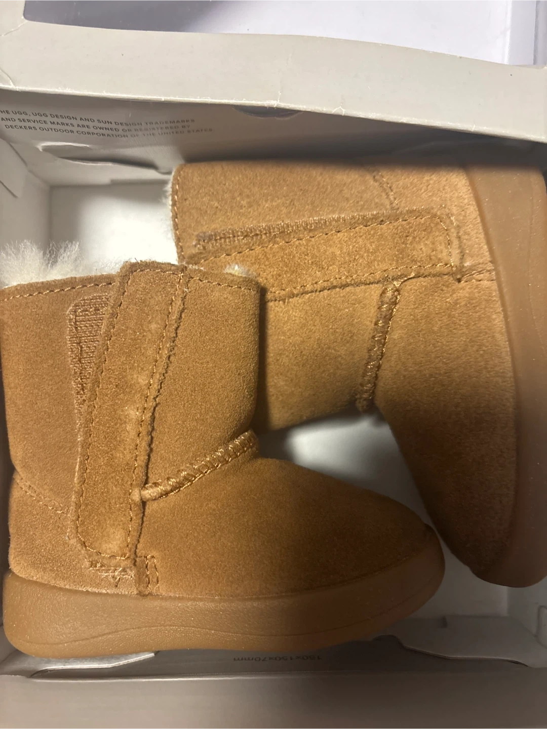 60Selling a pair of UGG I Keelan baby boots in size XS, suitable for 0-6 months old. These cute little boots come in their original box. They're perfect for keeping your baby's feet warm and cozy!