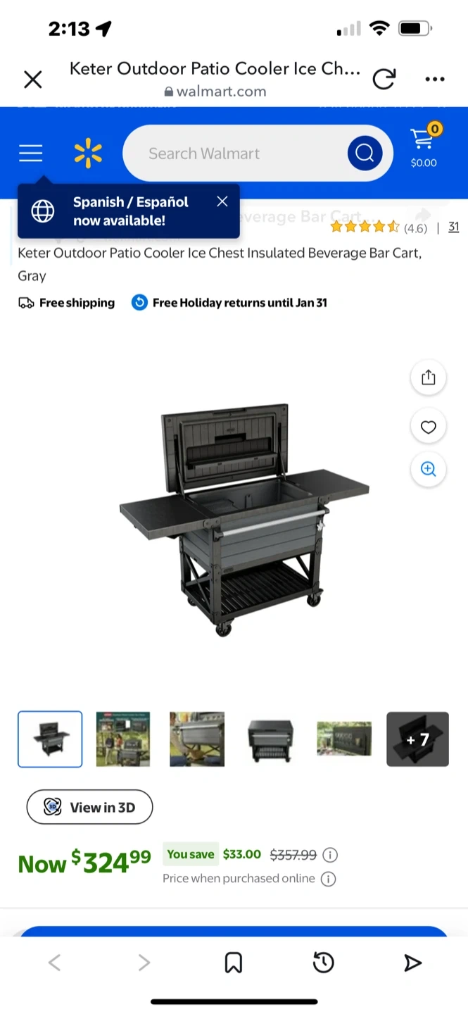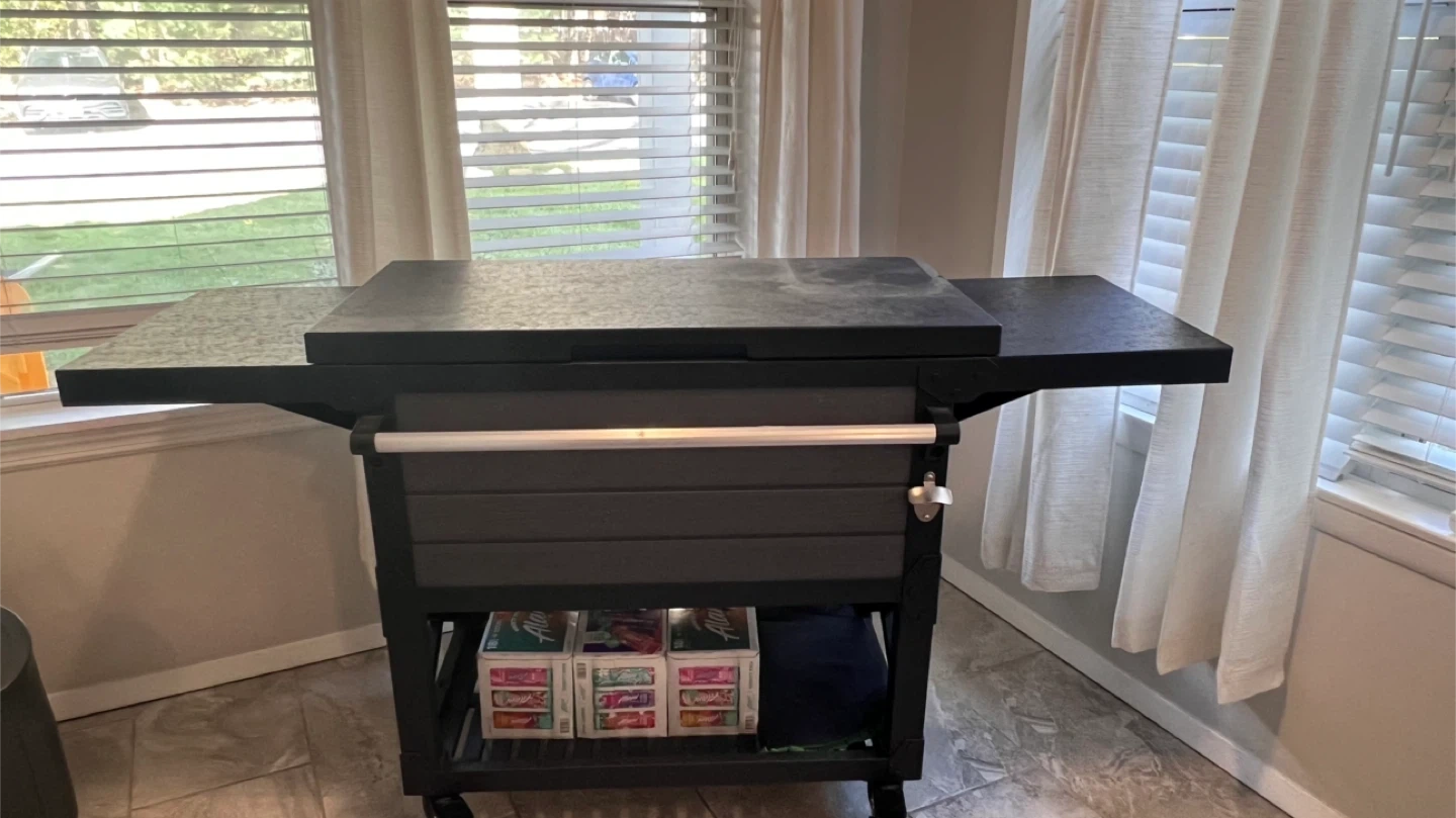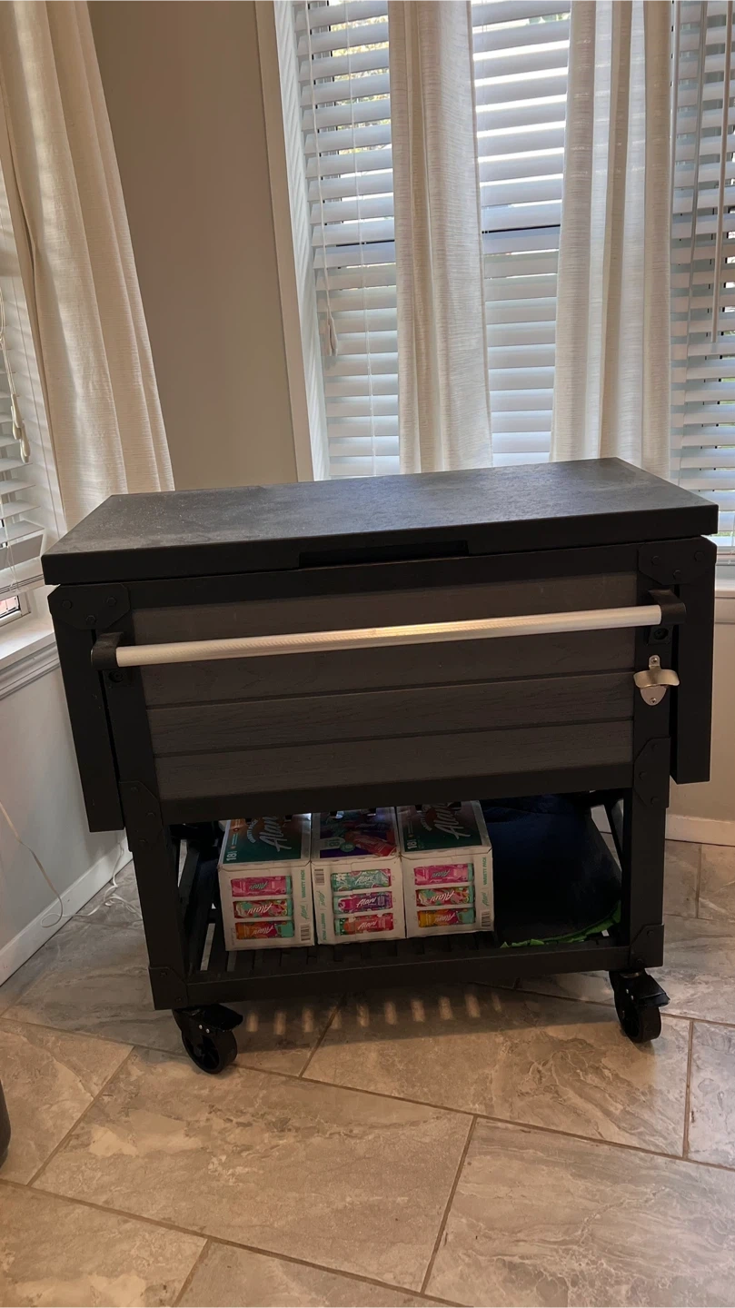 10Selling a Keter outdoor patio cooler and ice chest! It's an insulated beverage bar cart in gray. This cooler is perfect for keeping drinks cold during outdoor gatherings. It features a spacious interior and a convenient design for easy access to beverages. Retails for $324.99 Used for indoor use only