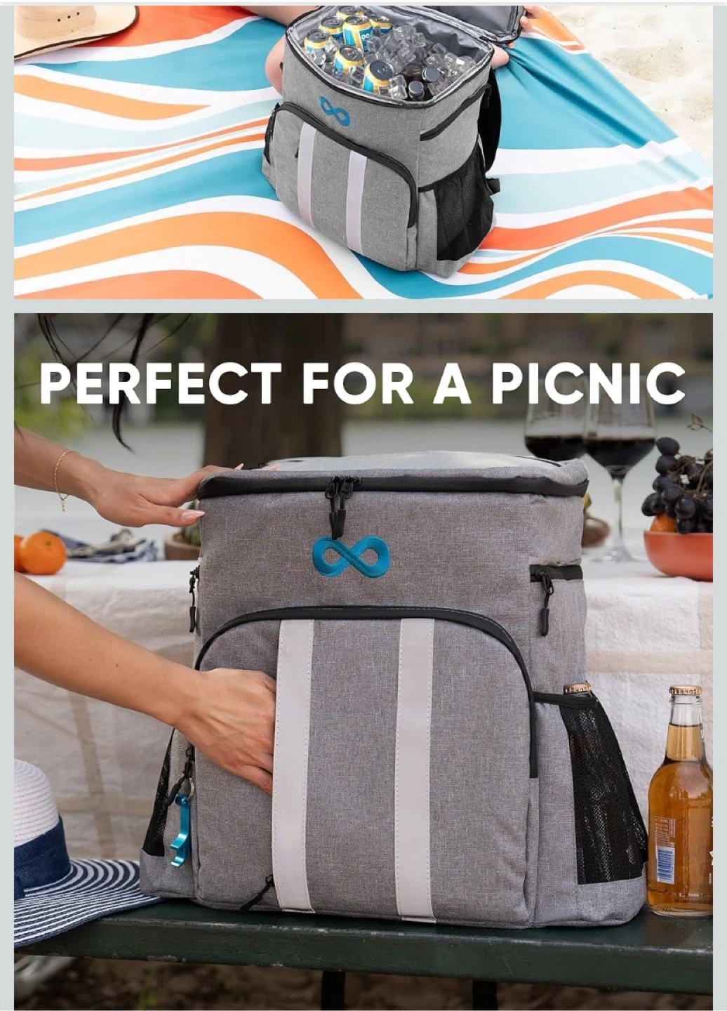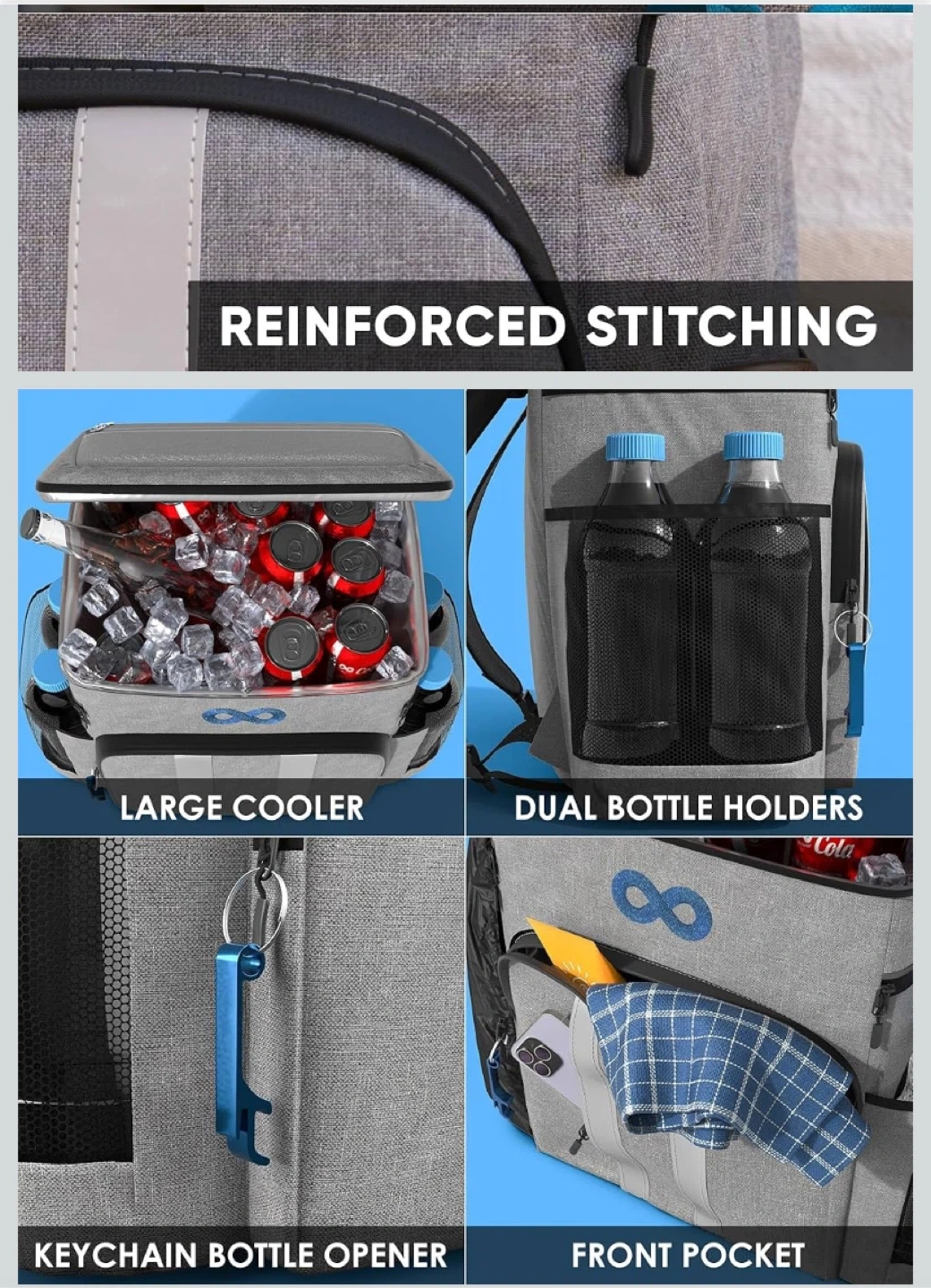 Keep your drinks and snacks cool on the go with this insulated cooler backpack! It features: