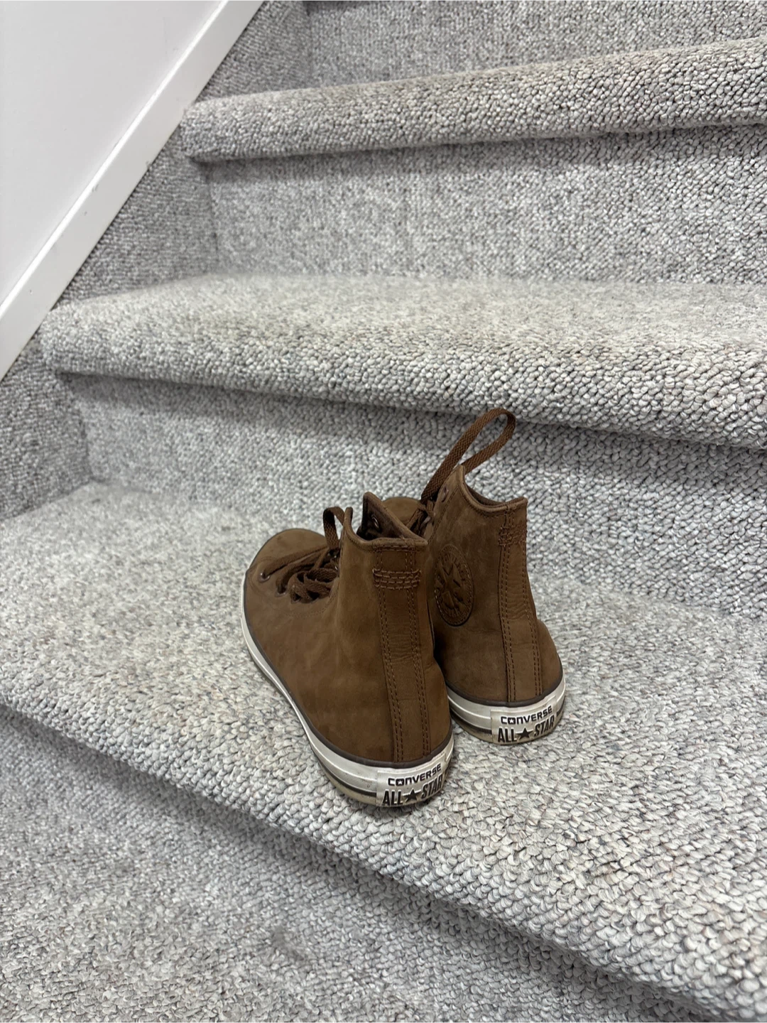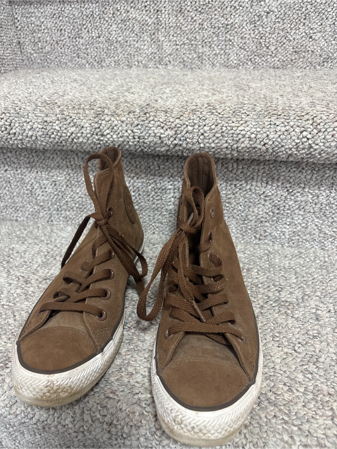Selling a pair of brown Converse All Star high top sneakers! They're in good condition and ready for a new home. Classic style and comfy for everyday wear size 8 pick up cash only