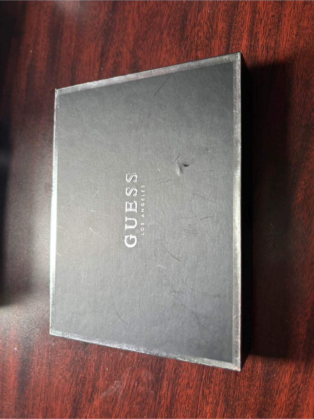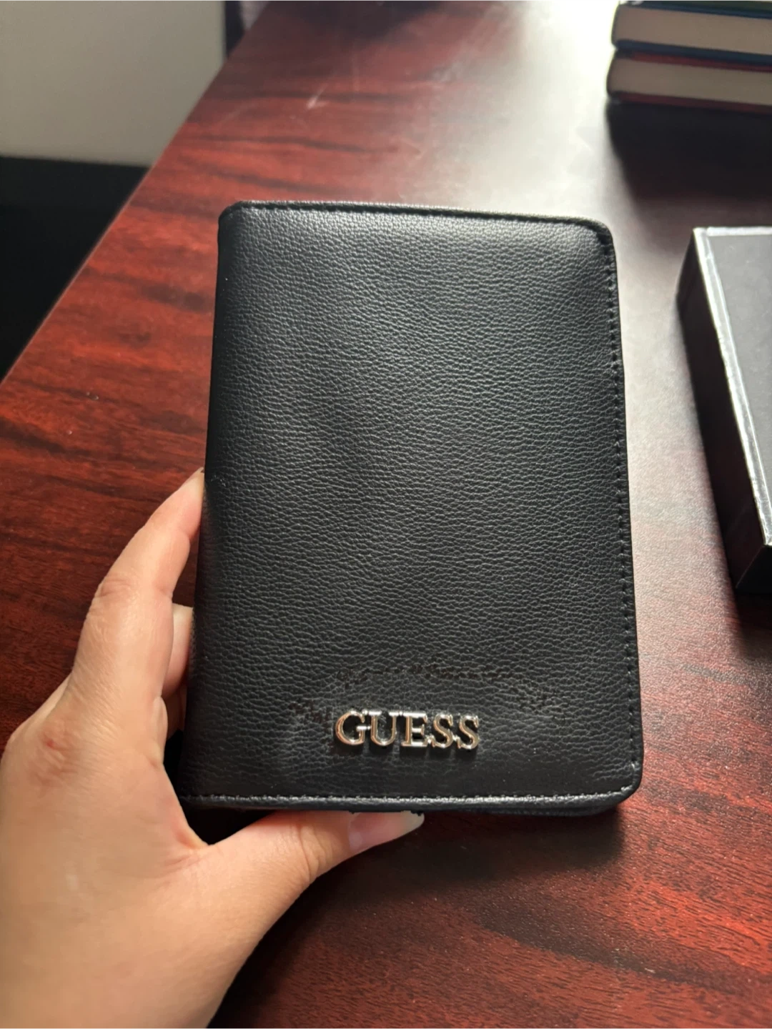 Guess black wallet in great condition! It comes with its original box so perfect for gifts or a stocking stuffer!
