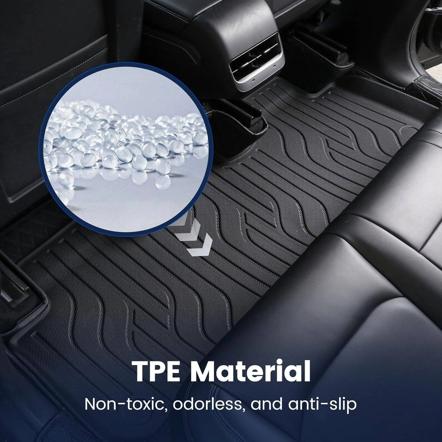 • 【For Tesla MODEL Y 5-SEAT 2024-2021】These high-quality floor mats offer precise coverage and comprehensive protection for your vehicle's flooring. With non-slip backing, these mats stay securely in place during use.