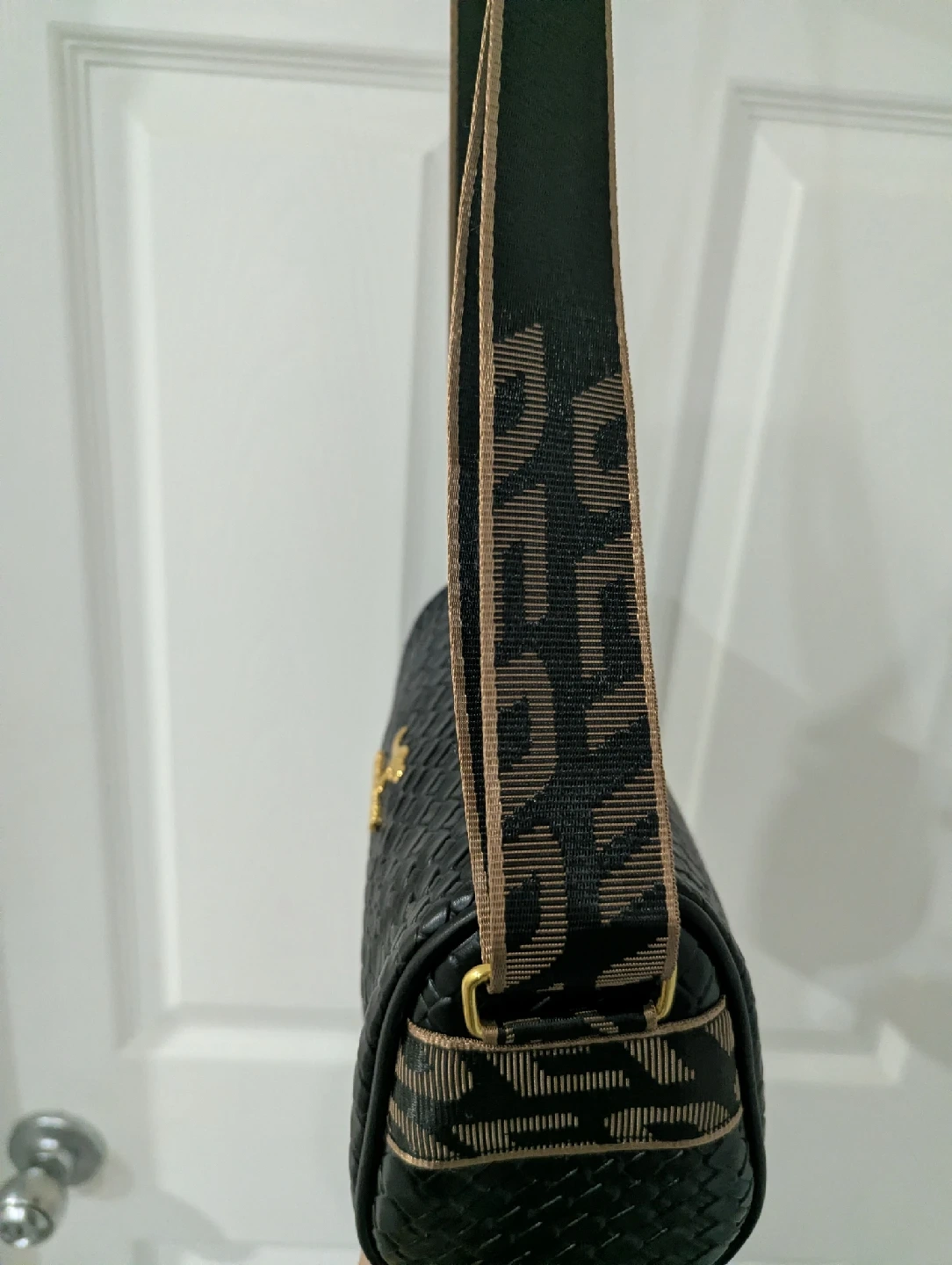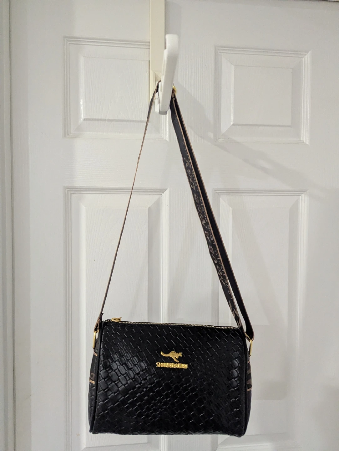This is a stylish black shoulder bag from SIKIRKIBARU. It features a unique woven pattern and a comfortable shoulder strap. Perfect for everyday use!