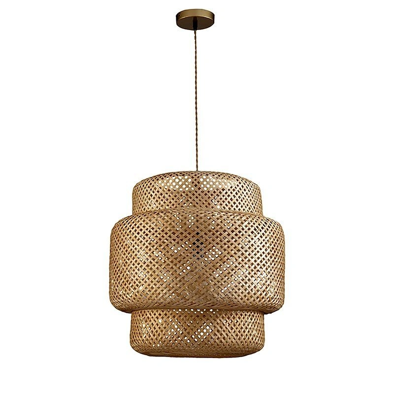 Three tiered pendant, hand crafted by woven material which gives a natural fiber warm, welcoming glow and casts decorative light patterns in the room. Use one Type E26 bulb, 60W max. Wipe with a soft dry cloth. Avoid the use of cleaners and abrasives. Do not place in bathrooms or areas with excessive moisture. Colors of natural materials. The color of the product you receive might vary slightly from the product picture due to the natural material colors and it is 100% handmade. All products are hand-made with natural materials. Please understand that all our wicker rattan pendants are handmade.