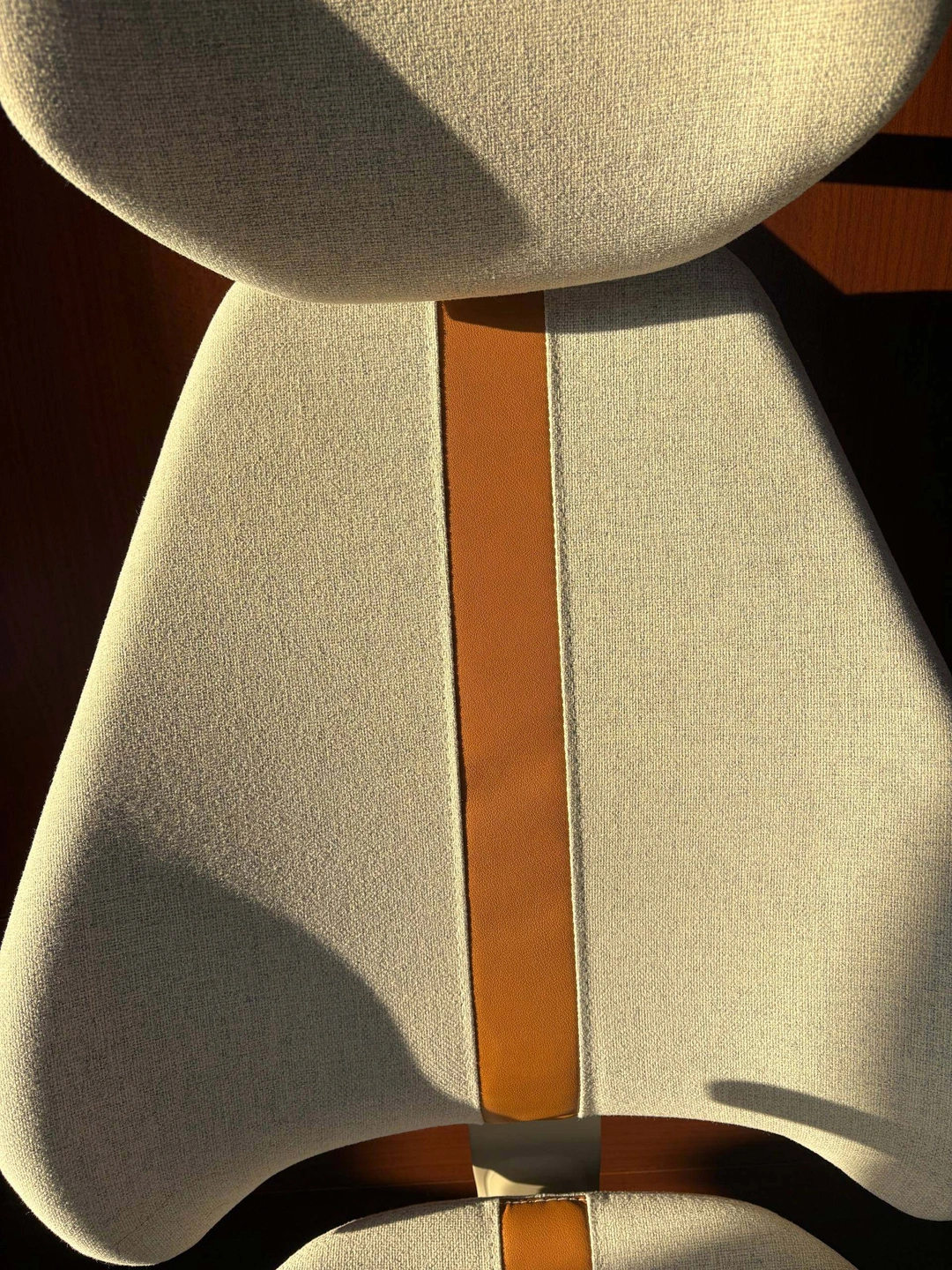IKEA GRUPPSPEL ergonomic gaming chair in Gunnared beige. Features distinct tan accent stripe, adjustable headrest, armrests, and recline with built-in rocking function. Durable fabric upholstery with dense foam padding, white powder-coated frame, and smooth rolling wheels. Condition: Used, light fabric marks/wear on seat and back visible (see close-ups), all functions tested and working. Fully assembled, pick up only.