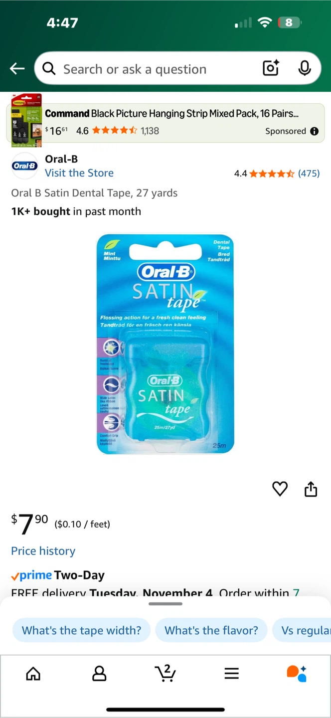 Get ready to floss with Oral-B Satin Tape! Each container has 27 yards of minty fresh floss. It's designed to be gentle on gums and provide a comfortable, satin-like texture for effective cleaning