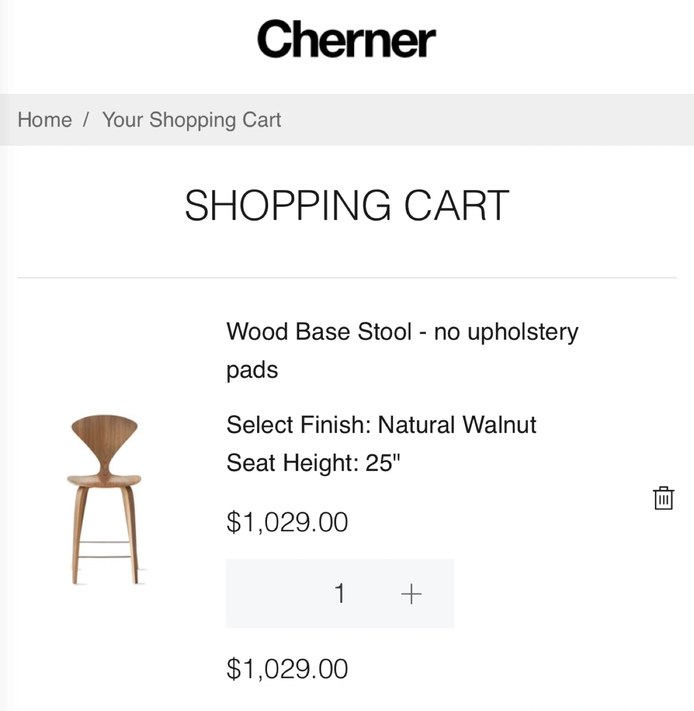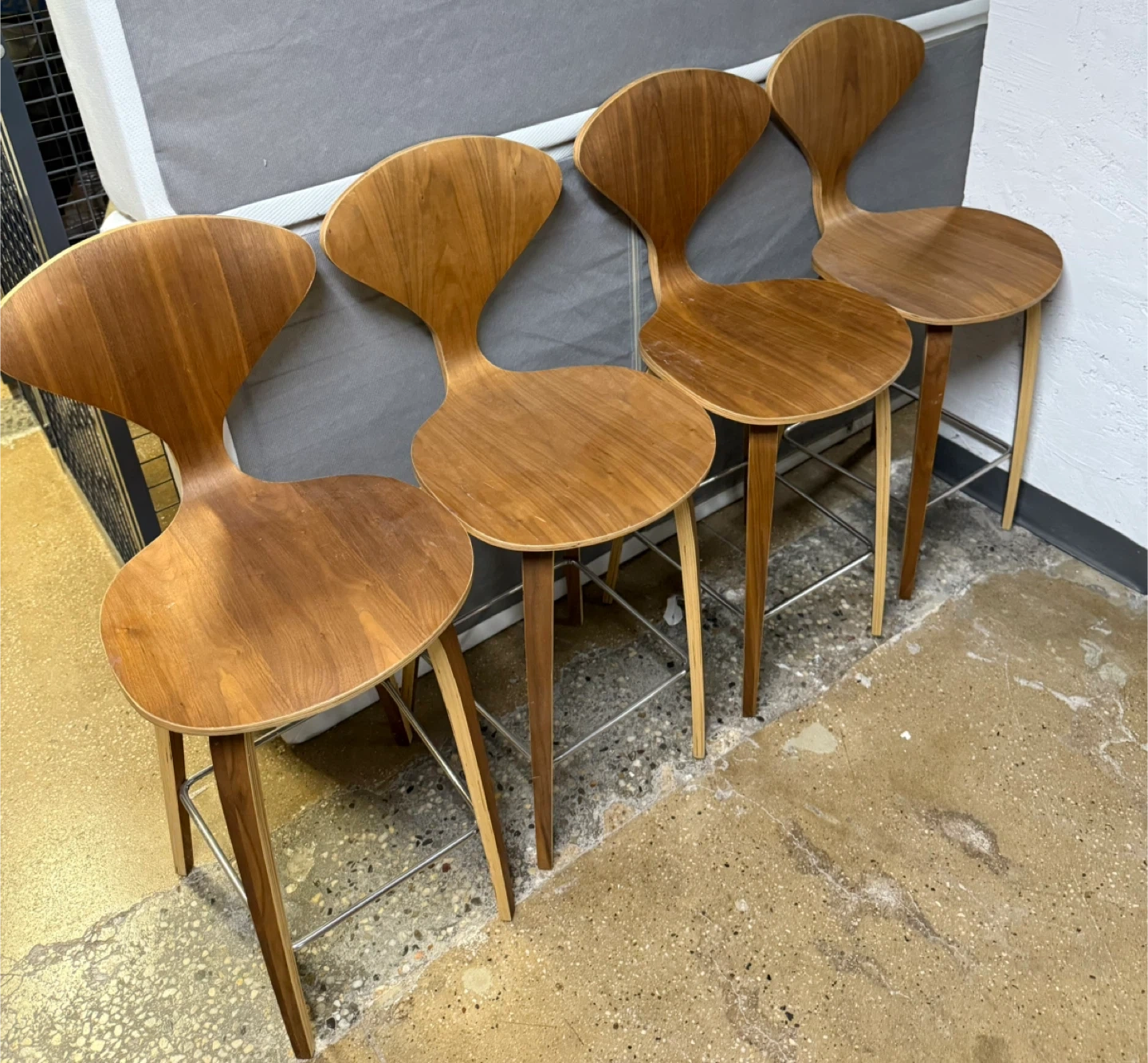 Selling a set of Cherner wood base stools. These have a natural walnut finish and a seat height of 25 inches. They're in good condition and ready to add a touch of elegance to your space!