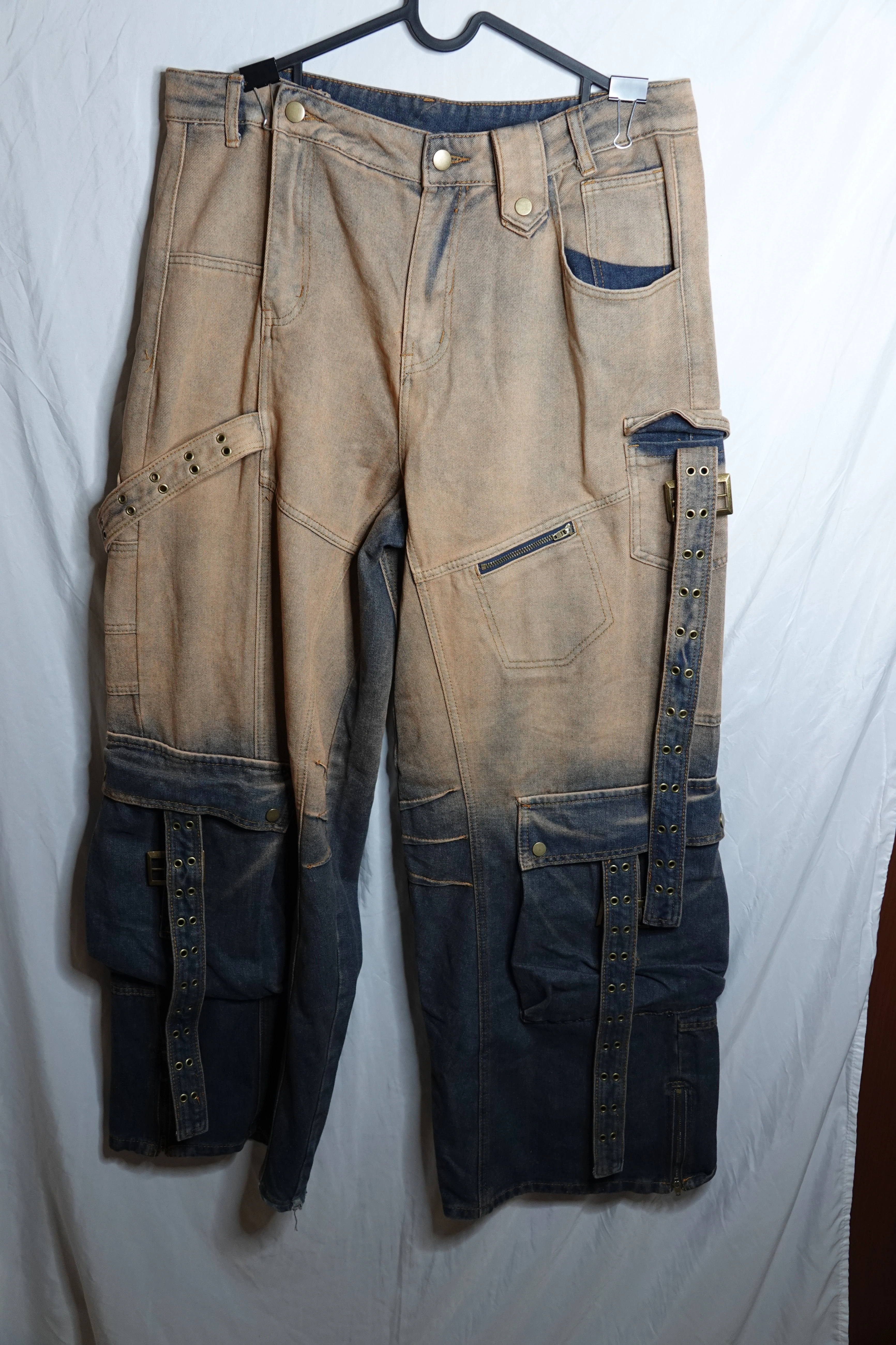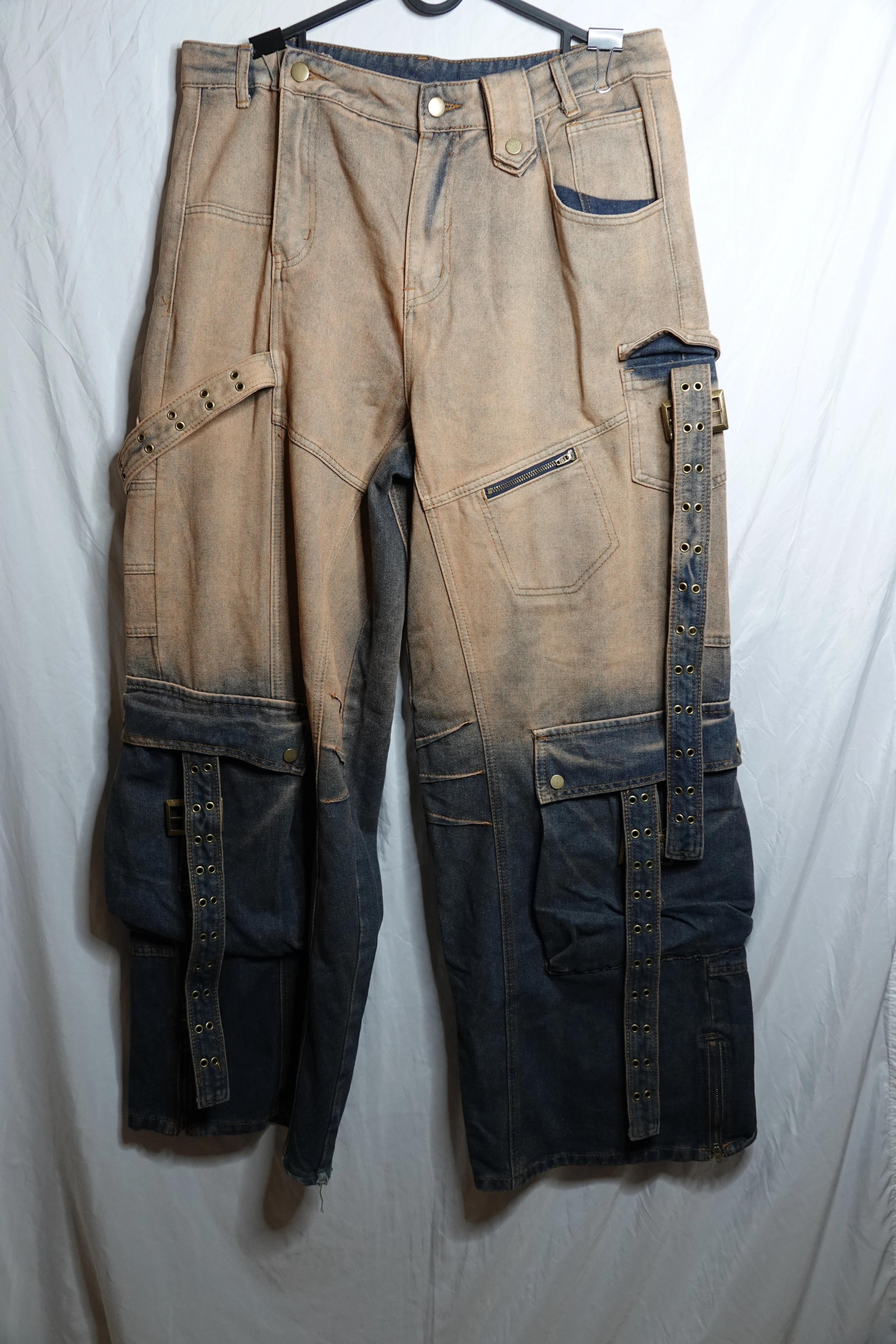 Manfinity Ombre Fade Patchwork Cargo Jeans – XL