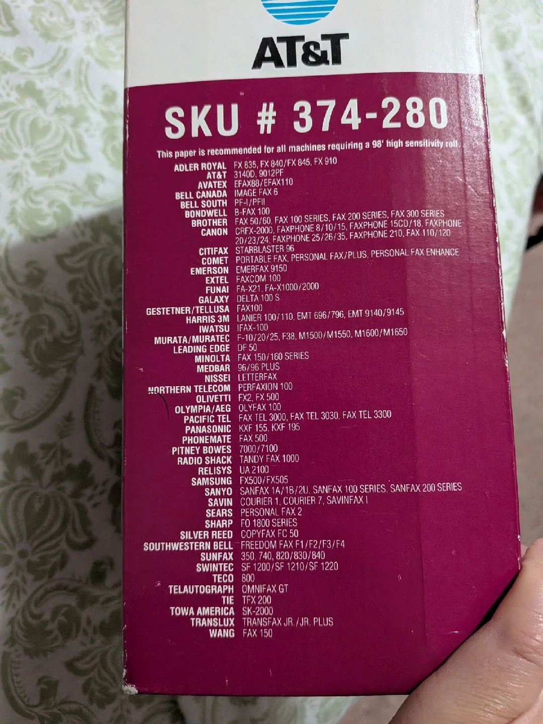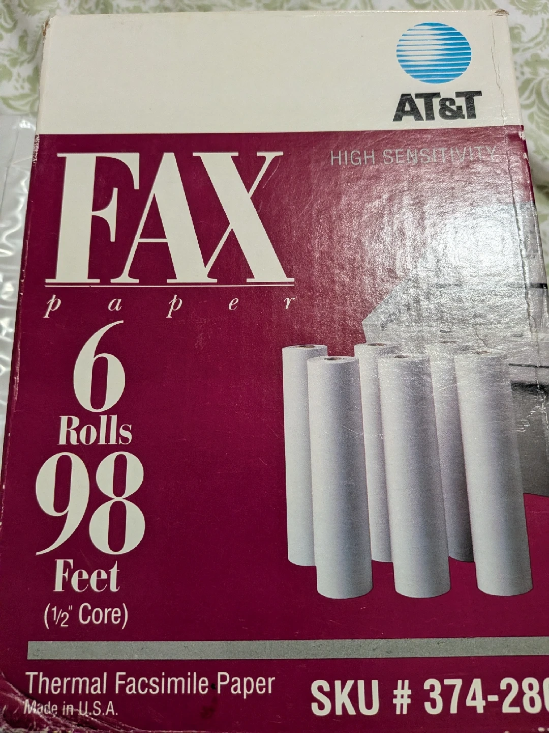 AT&T High Sensitivity Fax Paper - 5 Rolls left, 98 ft long