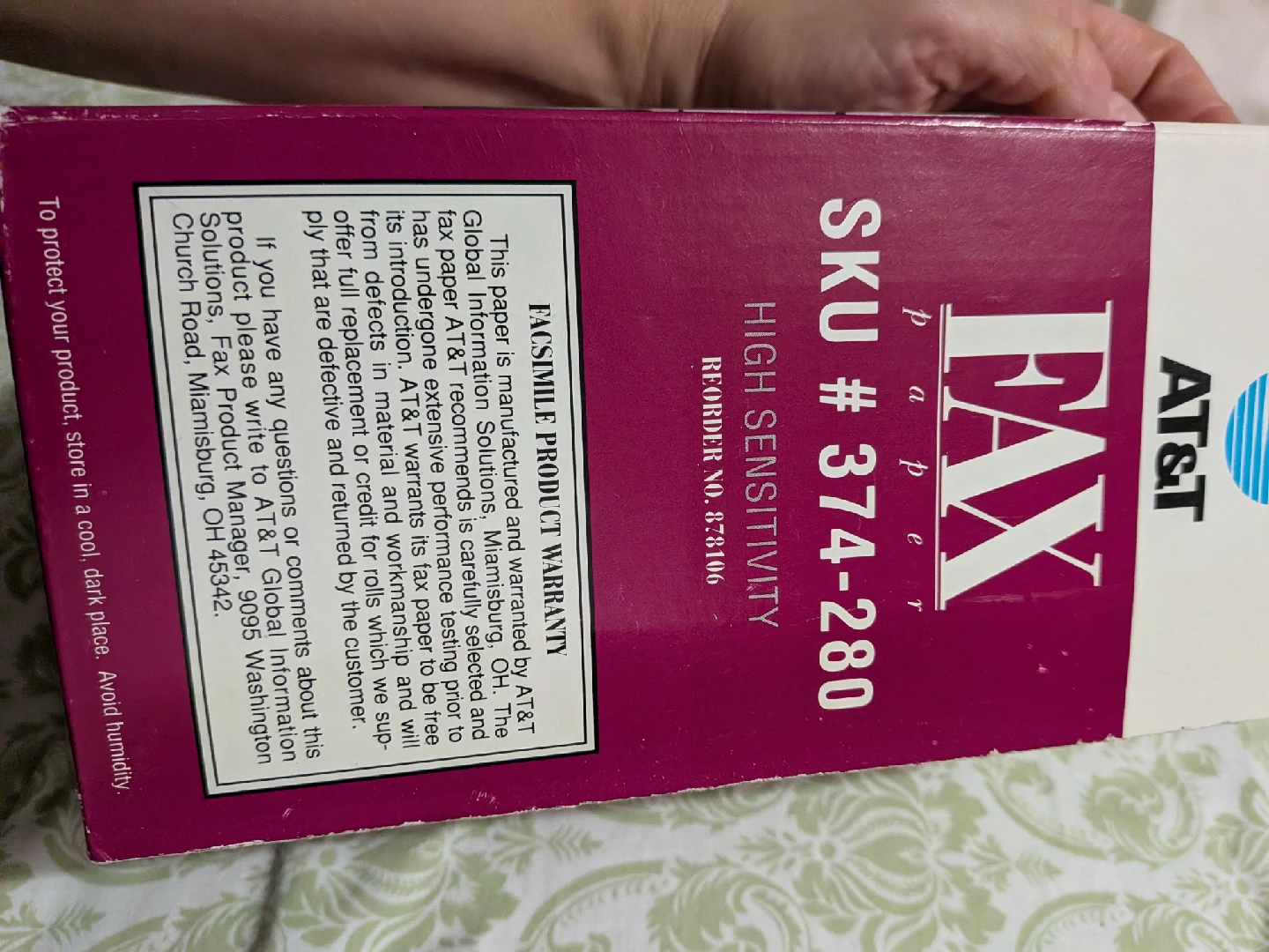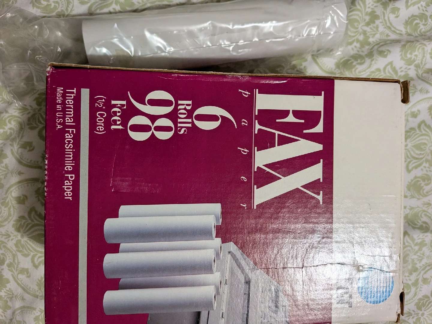 Selling a box of AT&T High Sensitivity Fax Paper. The box includes 5 rolls, each 98 feet long with a 1/2" core. This is thermal facsimile paper, SKU # 374-280. Perfect for older fax machines! Cash only, no etransfers Location: Etobicoke. Rathburn Rd and Renforth dr. Etobicoke Olympium nearby