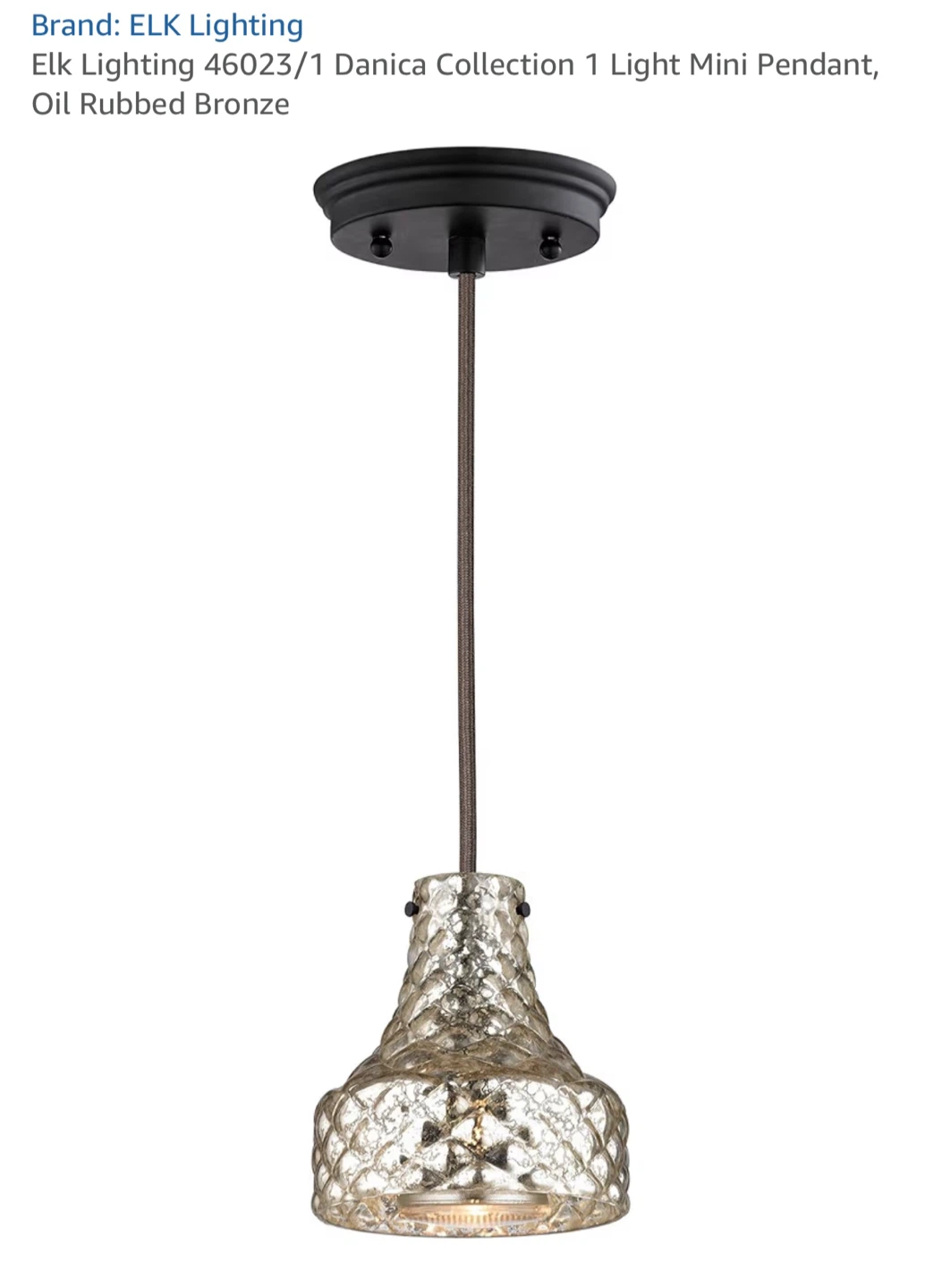 Selling an ELK Lighting Danica Collection 1 Light Mini Pendant in oil rubbed bronze. This pendant light adds a touch of elegance to any room. The box is included!