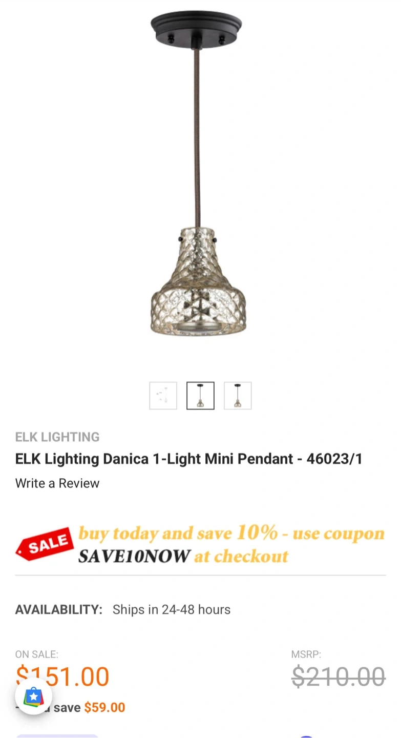 ELK Lighting Danica Mini Pendant - Brand New( Free Shipping)