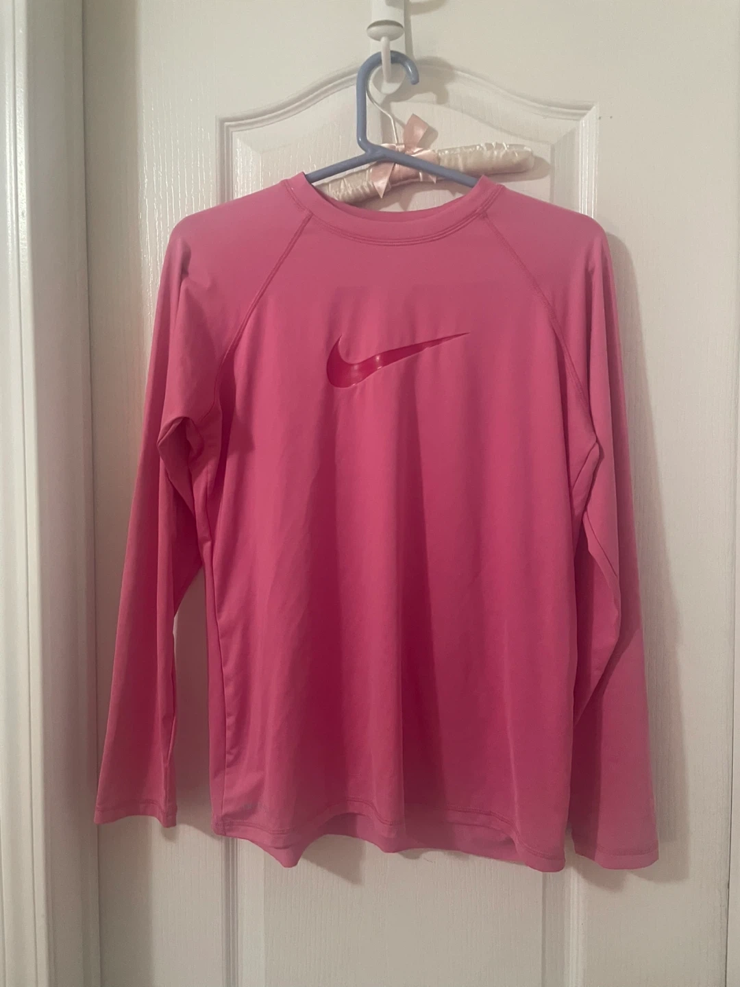 Selling a Nike Dri-FIT long sleeve shirt in pink! It's a great shirt for working out or just hanging out. The Dri-FIT material will keep you cool and comfortable.