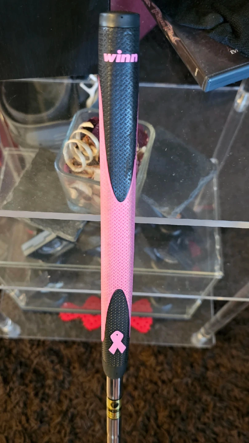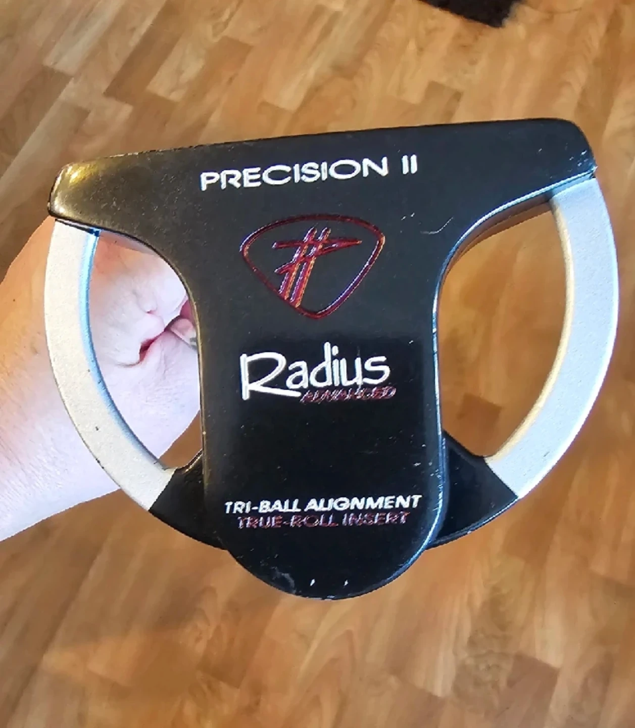 Selling a Radius Precision II putter. Collection for Breast Cancer Awareness. It has a Winn grip, which is in pink and black. It also has a tri-ball alignment true-roll insert.