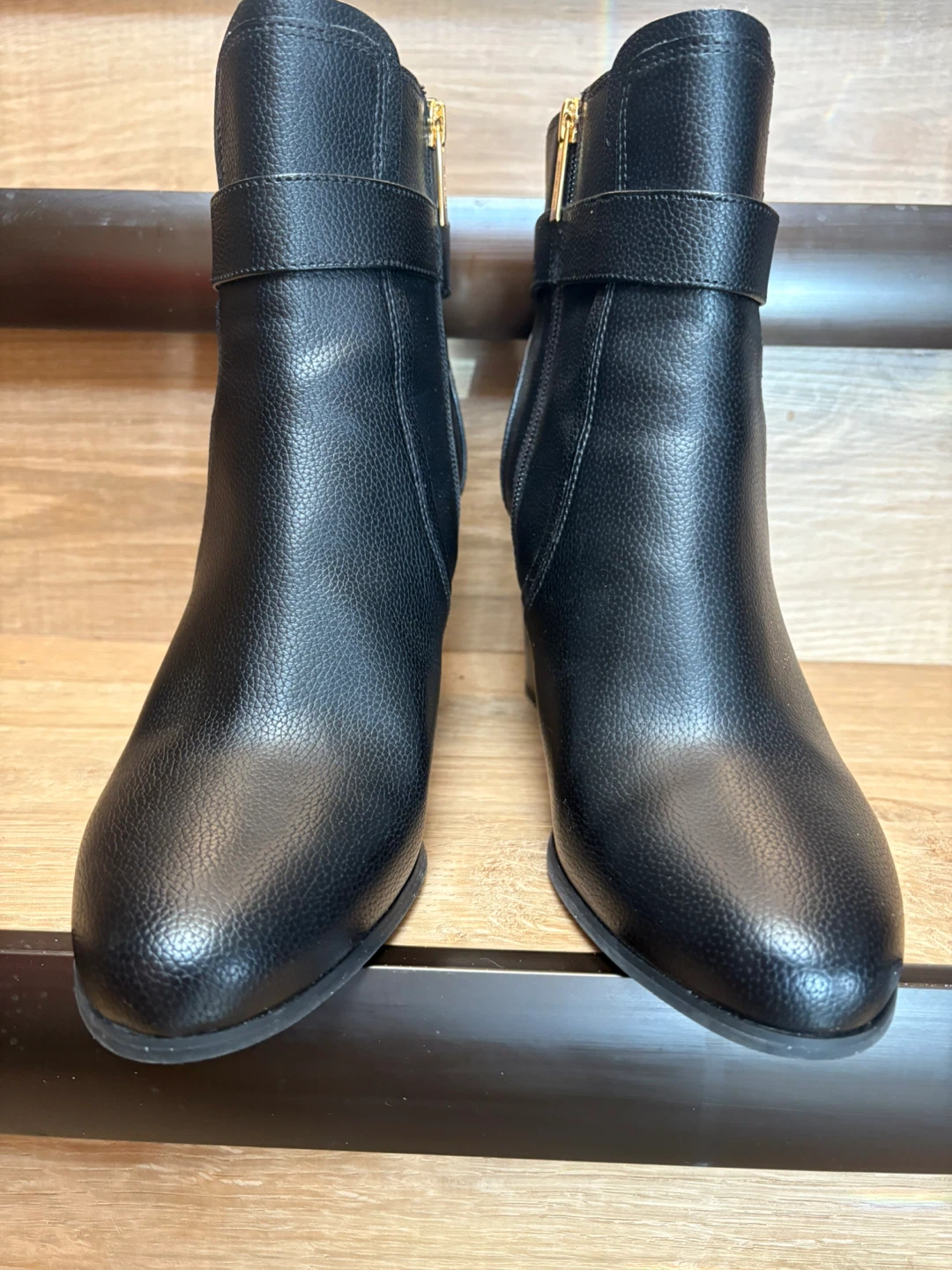 Michael Kors black leather ankle boots in size 11, but fits comfortably a size 10 or 10.5 as well. These stylish boots feature a gold-tone zipper and buckle detail. They are in great new condition, never worn! Pick up in Chestermere.