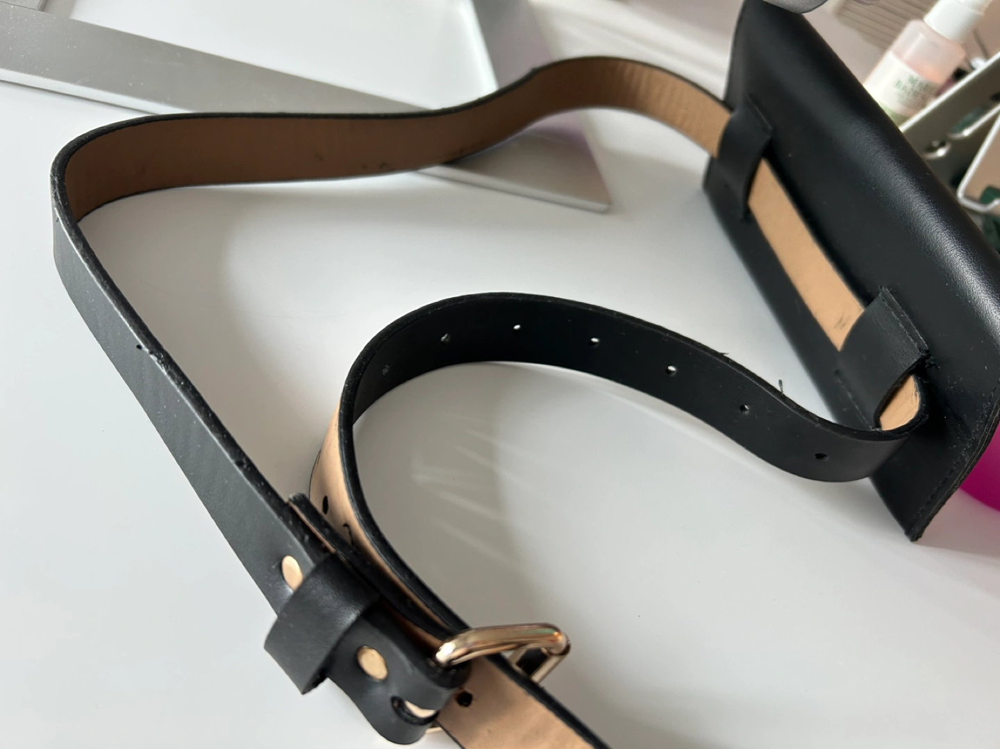 New, black waist bag. The belt is adjustable, inside is suede, never worn. It fits iPhone 14 Plus. Price is negotiable.