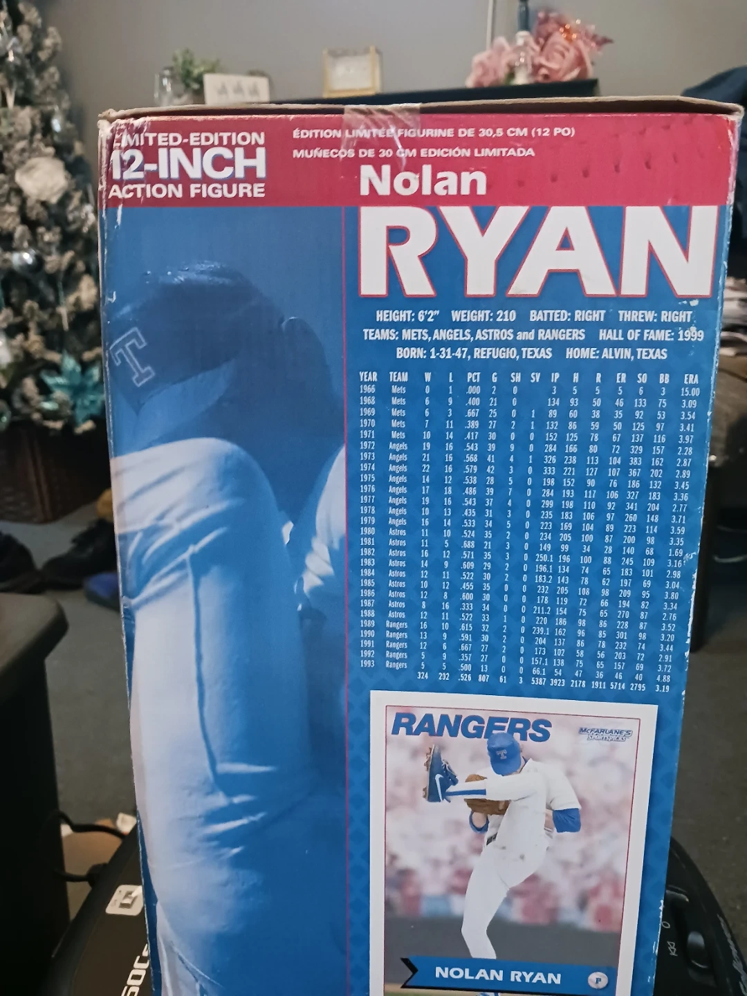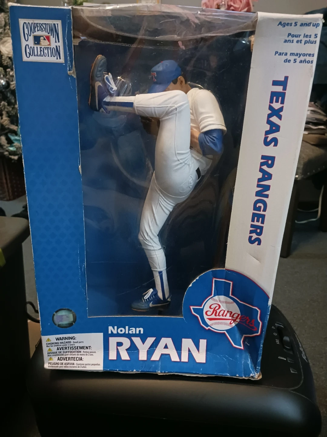 Selling a Cooperstown Collection Nolan Ryan limited-edition 12-inch action figure. It's a Texas Rangers figurine of 30.5 cm (12 PO). Ages 5 and up.