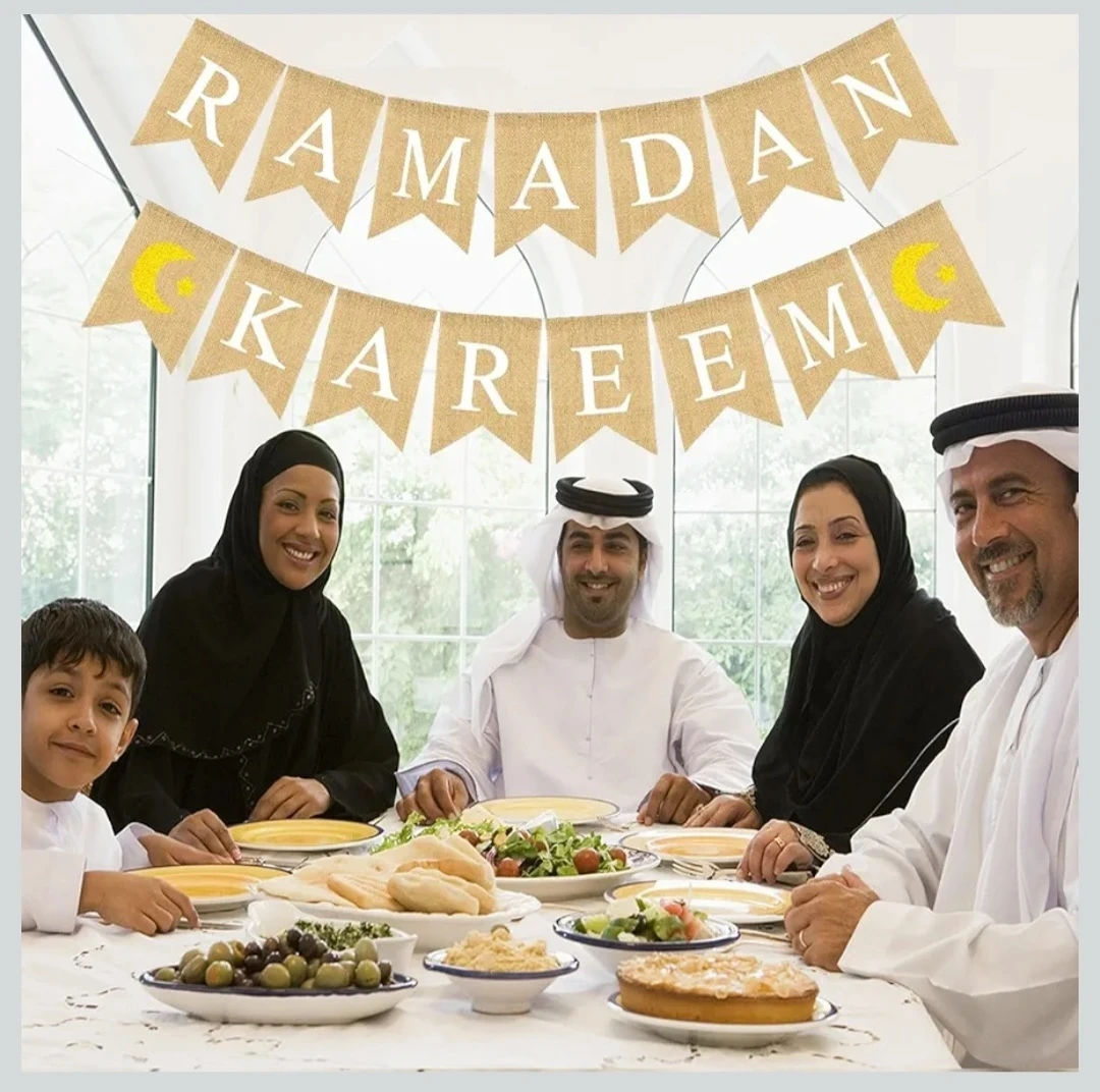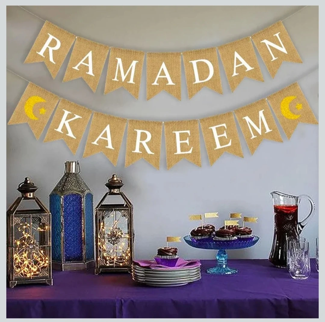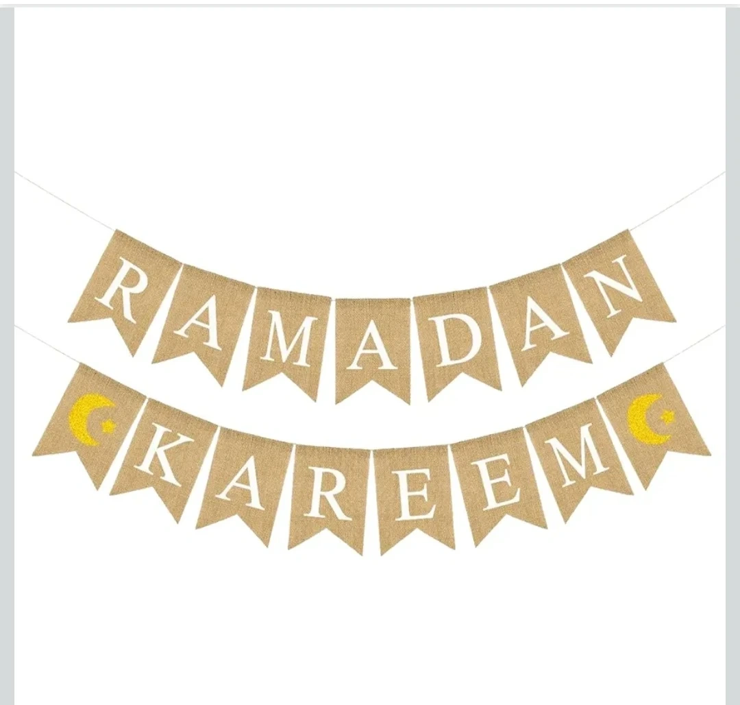 Get ready for Ramadan with this cute burlap banner! It says "Ramadan Kareem" and comes pre-strung for easy setup.