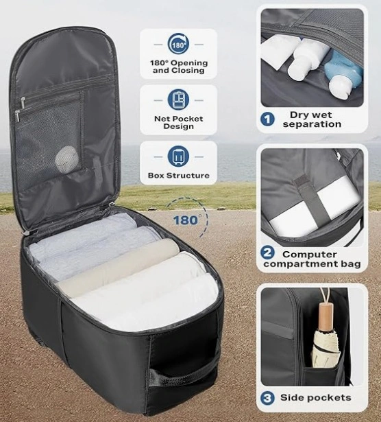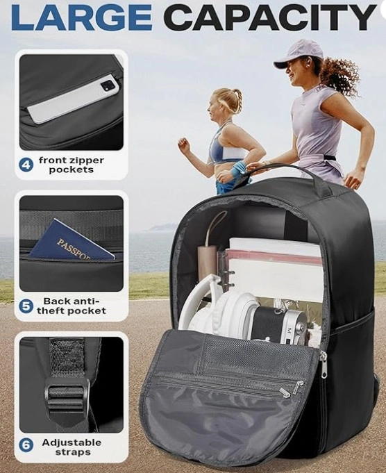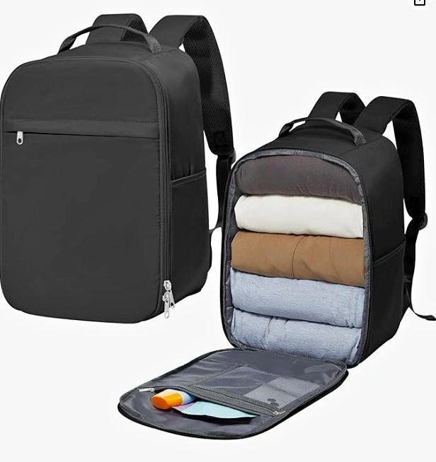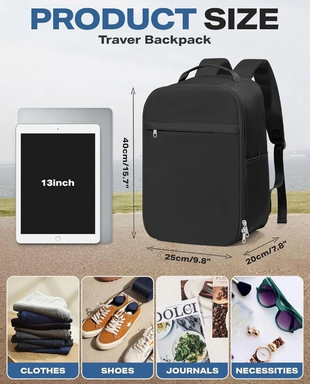 New, never used black backpack. Roomy and spacious, perfect size to meet aviation standards. It can hold multiple heavy clothes and travel items. Great option as a travel backpack, made of durable waterproof polyester fabrics with breathable fabric and mesh style padded straps. It also features a dry-wet separation design. Can be used as hybrid backpack/ duffel bag/ shoulder bag and travel bag.