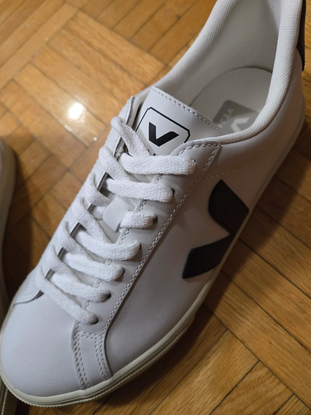 Veja Campo leather sneakers in a white & cream colour with black logo detailing. These are in brand new condition.
